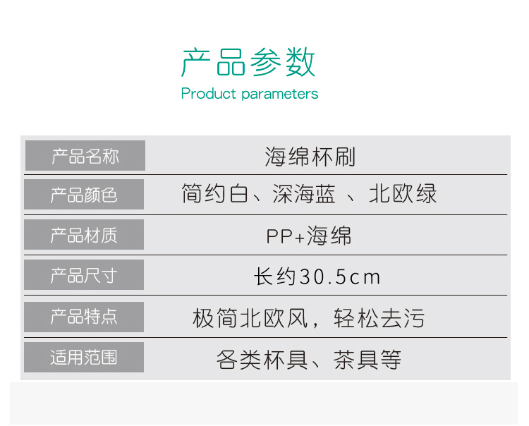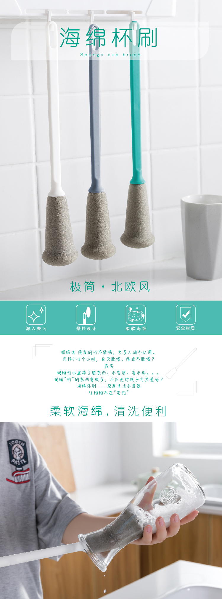 • 商品名称:北欧长柄可悬挂清洁去污海绵杯刷--蓝色(OPP袋装)