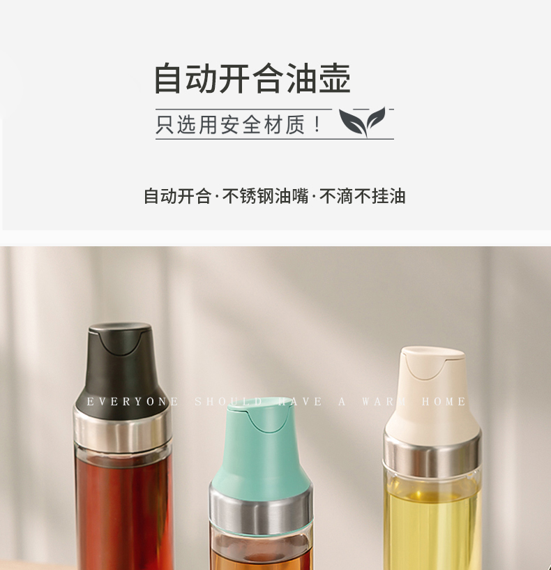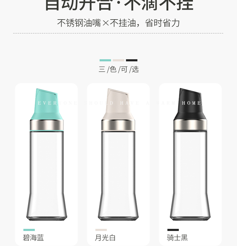 - 商品名称:304不锈钢油嘴自动开合透明玻璃油壶 酱油醋调味瓶 500ml--蓝色