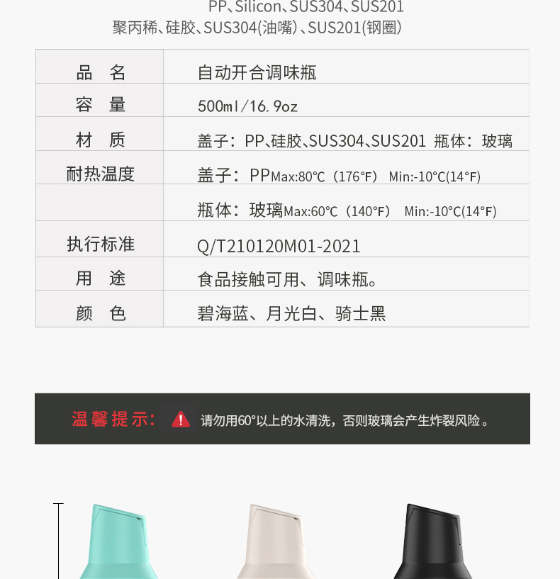 - 商品材质:PP+硅胶+SUS304+SUS201+玻璃