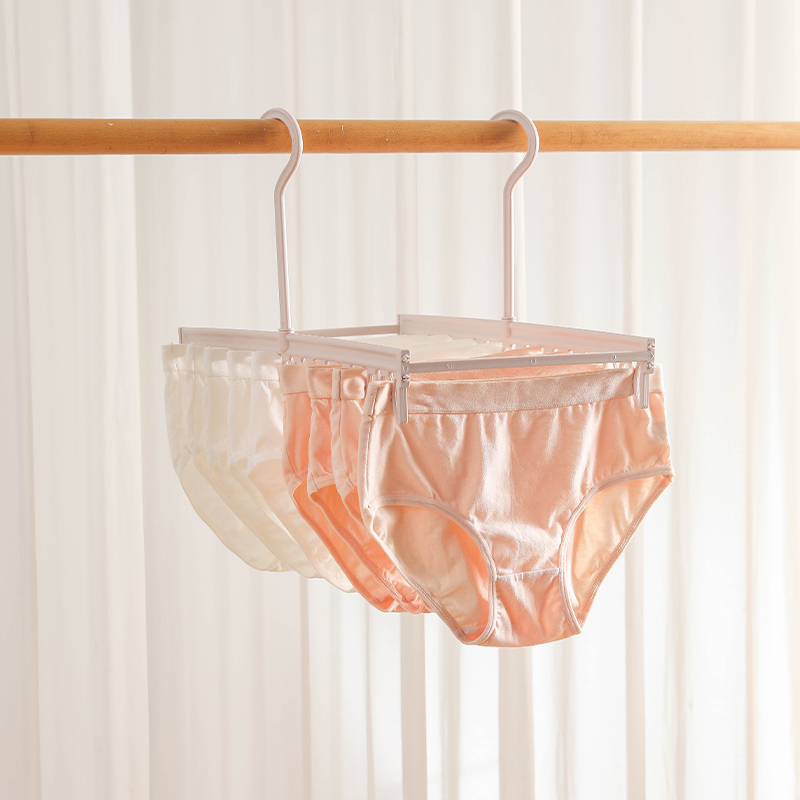 - 商品名称:双钩挂式袜子晾晒收纳架 内衣内裤收纳挂架 36夹--粉色