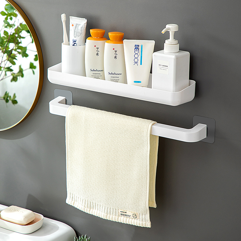 商品名称: 加粗杆免打孔无痕壁挂可吸顶挂毛巾架 抹布收纳架--大号 白色