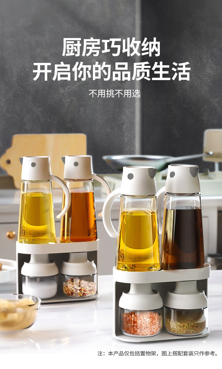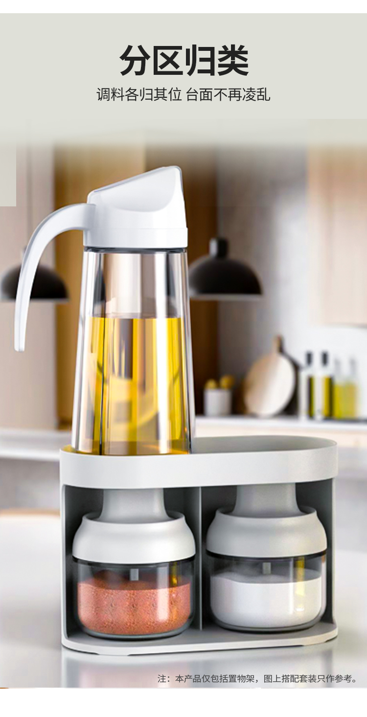 本品仅为一个双层支架,可自由组合搭配自备的油壶、调味瓶罐、化妆品等收纳使用。
