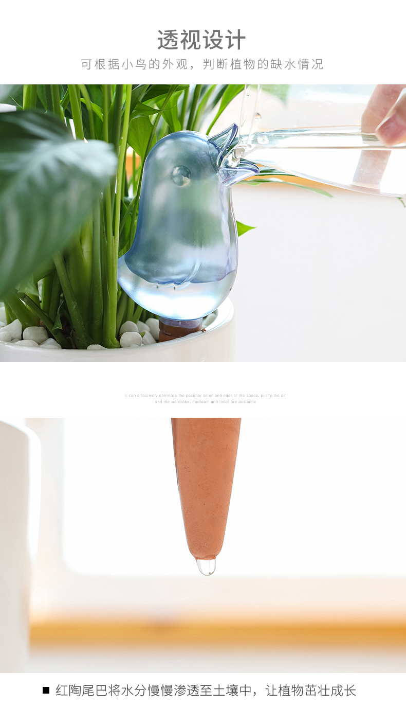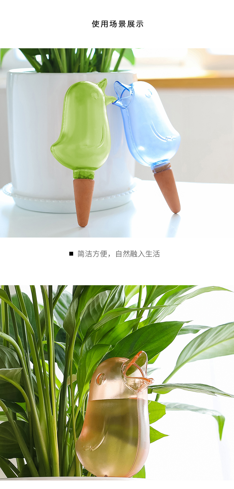 • 商品名称:小鸟造型懒人浇花水壶 透明自动滴水器--绿色