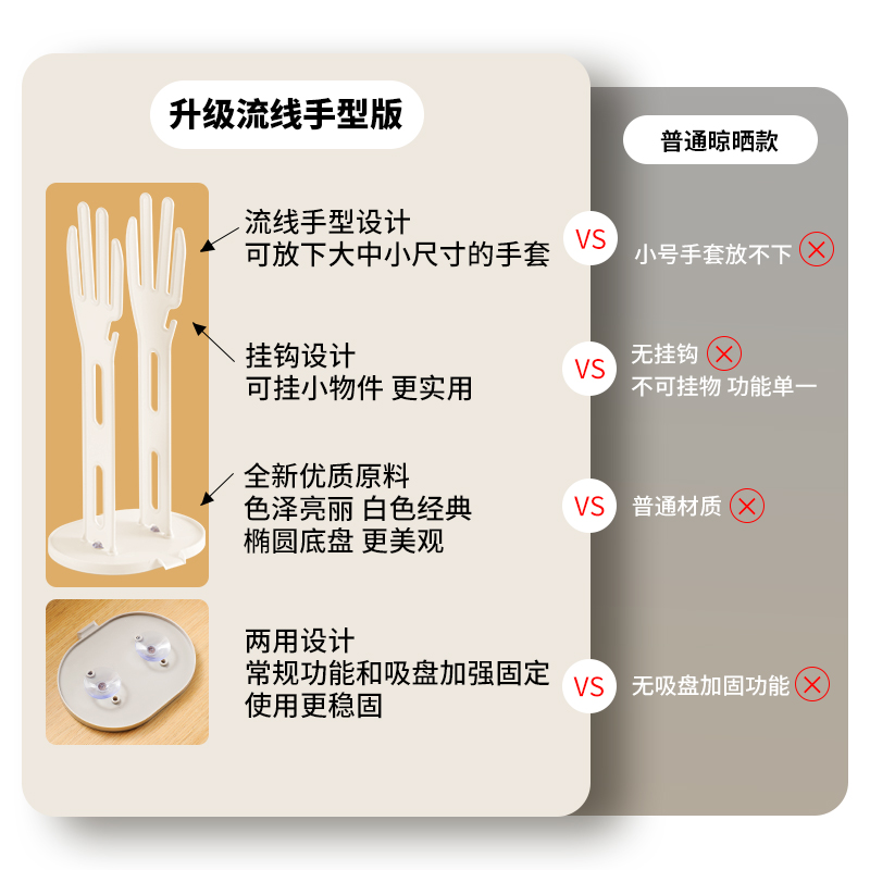 1,流线手指造型,使用时插入手套的四个指位,非五指,不影响沥水效果。
