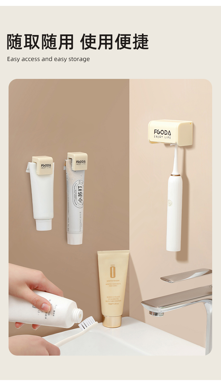 • 商品名称:奶油黄简约壁挂牙膏收纳架 洗面奶收纳夹