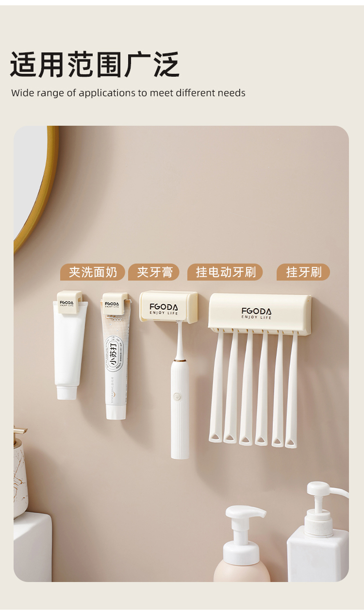 HQS-222373 奶油黄简约壁挂牙膏收纳架 洗面奶收纳夹 149 登录查看