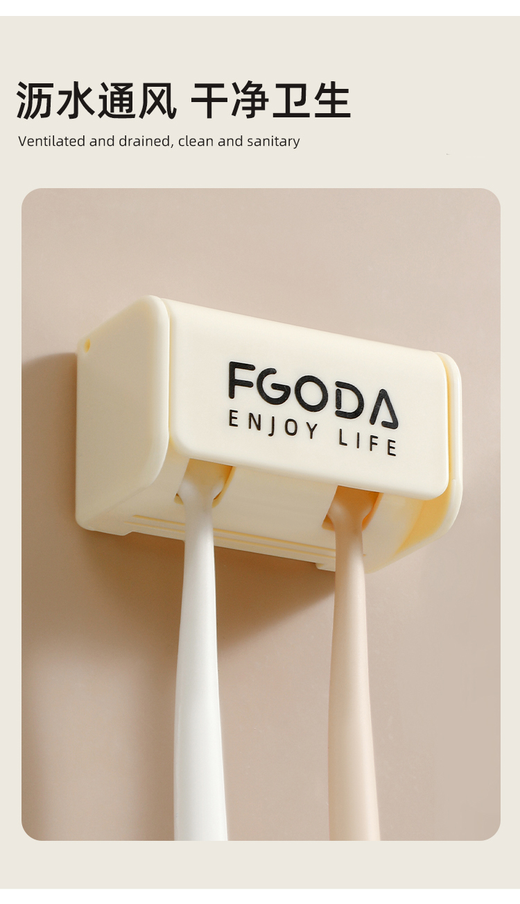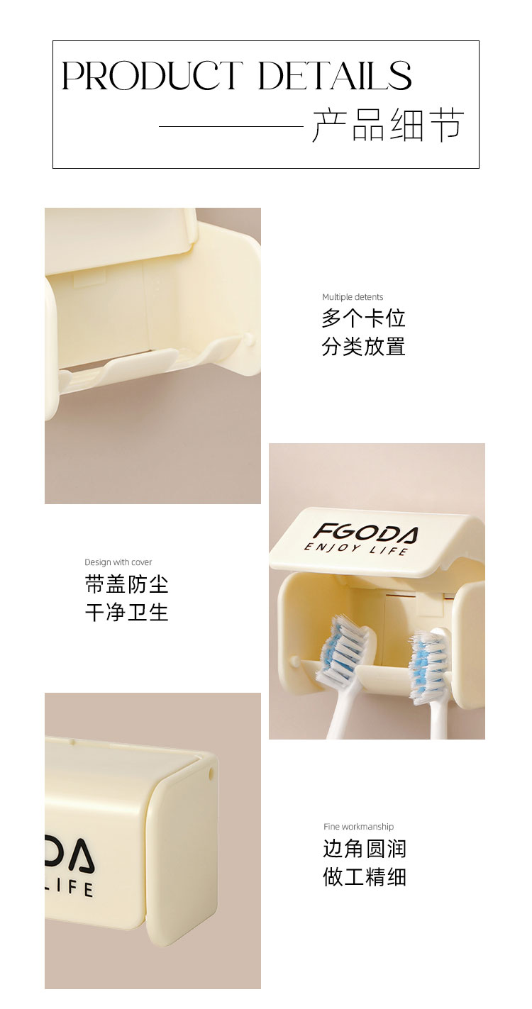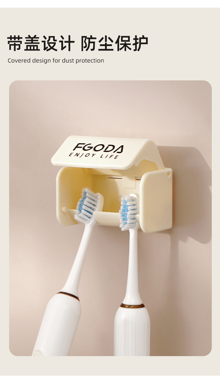 HQS-222374 奶油黄简约壁挂带盖防尘牙刷收纳架--小号 双牙刷位 9 2.18