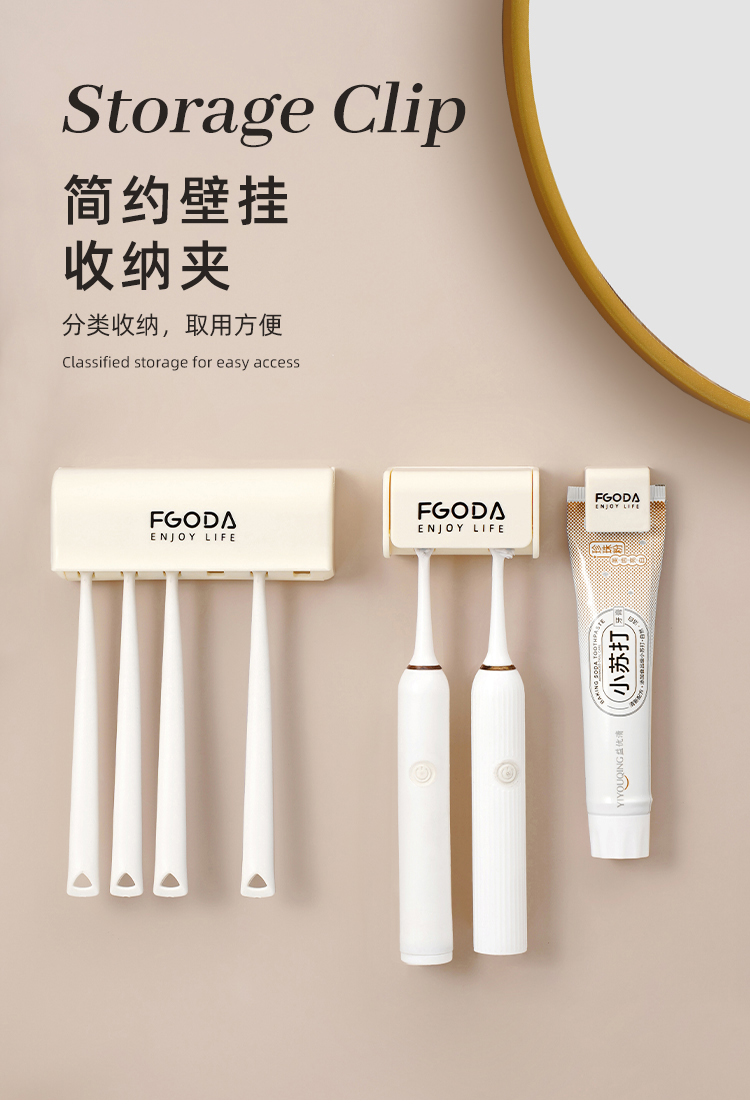商品名称: 奶油黄简约壁挂牙膏收纳架 洗面奶收纳夹