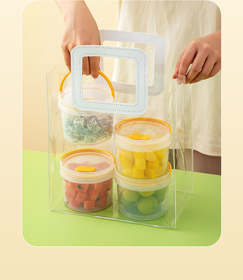 • 商品名称:带提手防尘防漏密封罐 便携透明果茶桶水果盒--中号矮款 480mL