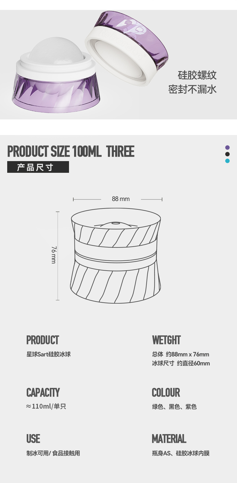 - 商品名称:星球升级款易脱模6CM大冰球硅胶快捷冰球模具--两只装紫色