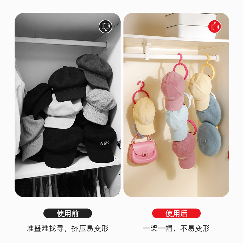 HQS-223024 衣柜帽子收纳架 可环扣组合帽子挂架--玫红+蓝色 2个装 69 登录查看