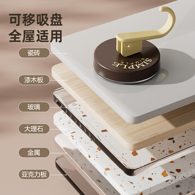 HQS-223388 轻奢真空吸盘挂钩 可水洗可拆卸挂钩--棕色 19 登录查看
