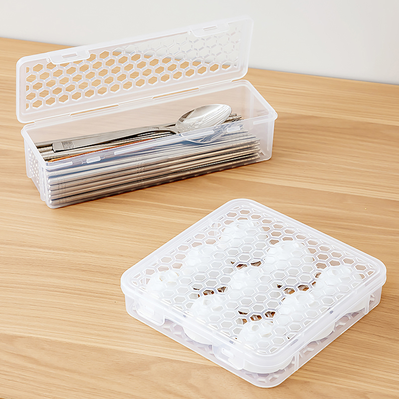 HQS-223509 洗碗机小物清洗收纳盒 双面镂空奶嘴筷勺清洗盒--长方形 透明 141 3.65