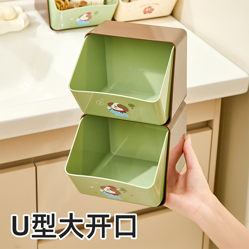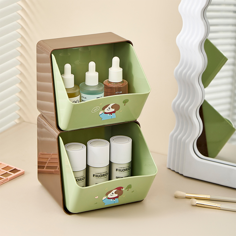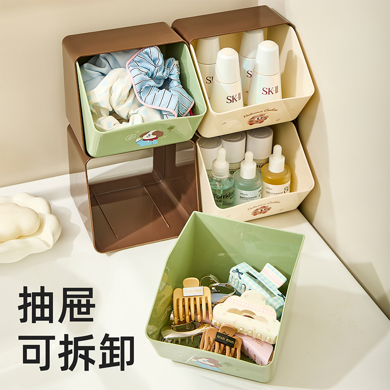 HQS-223522 双层大开口独立抽屉桌面收纳盒 卫浴整理盒--棕色+绿色 11 登录查看