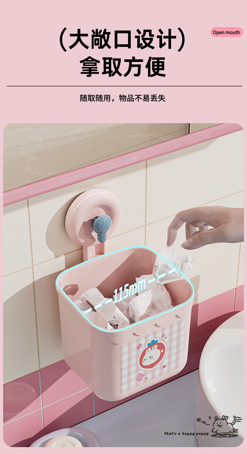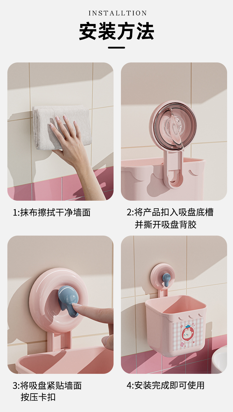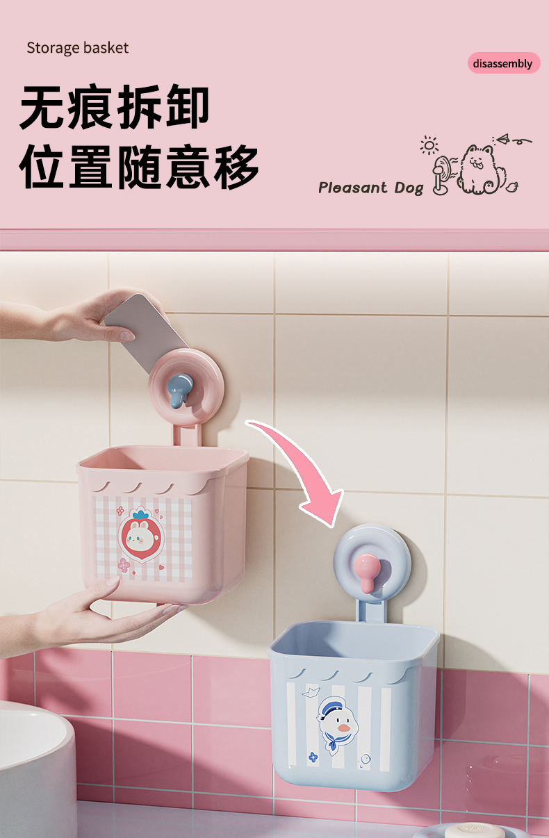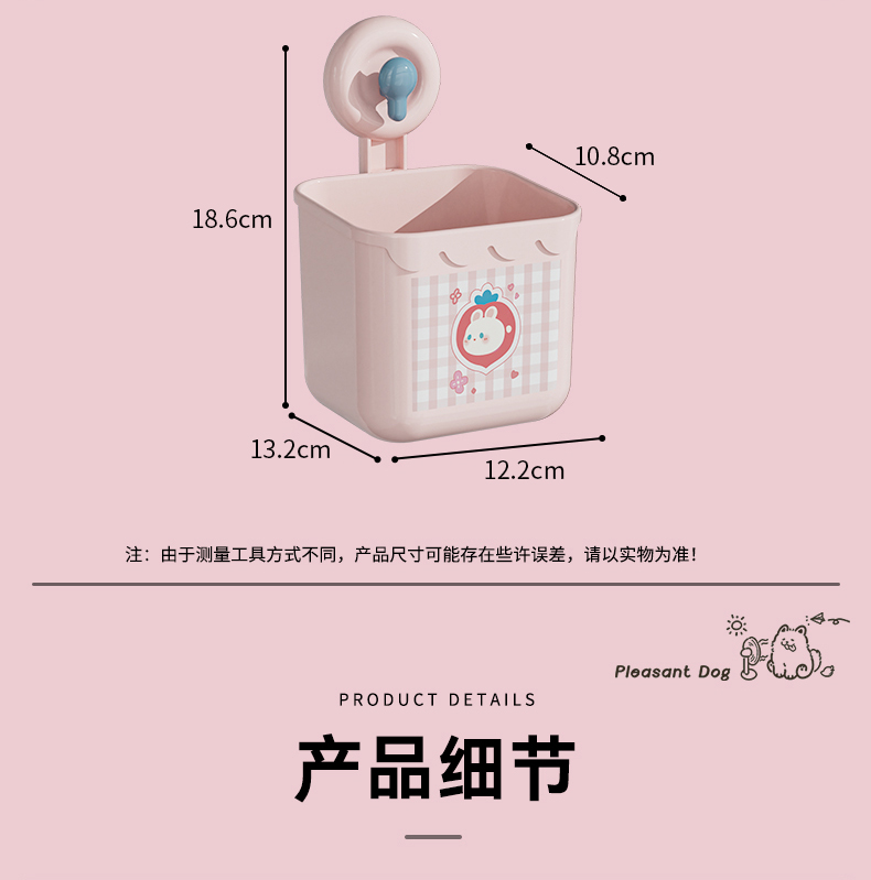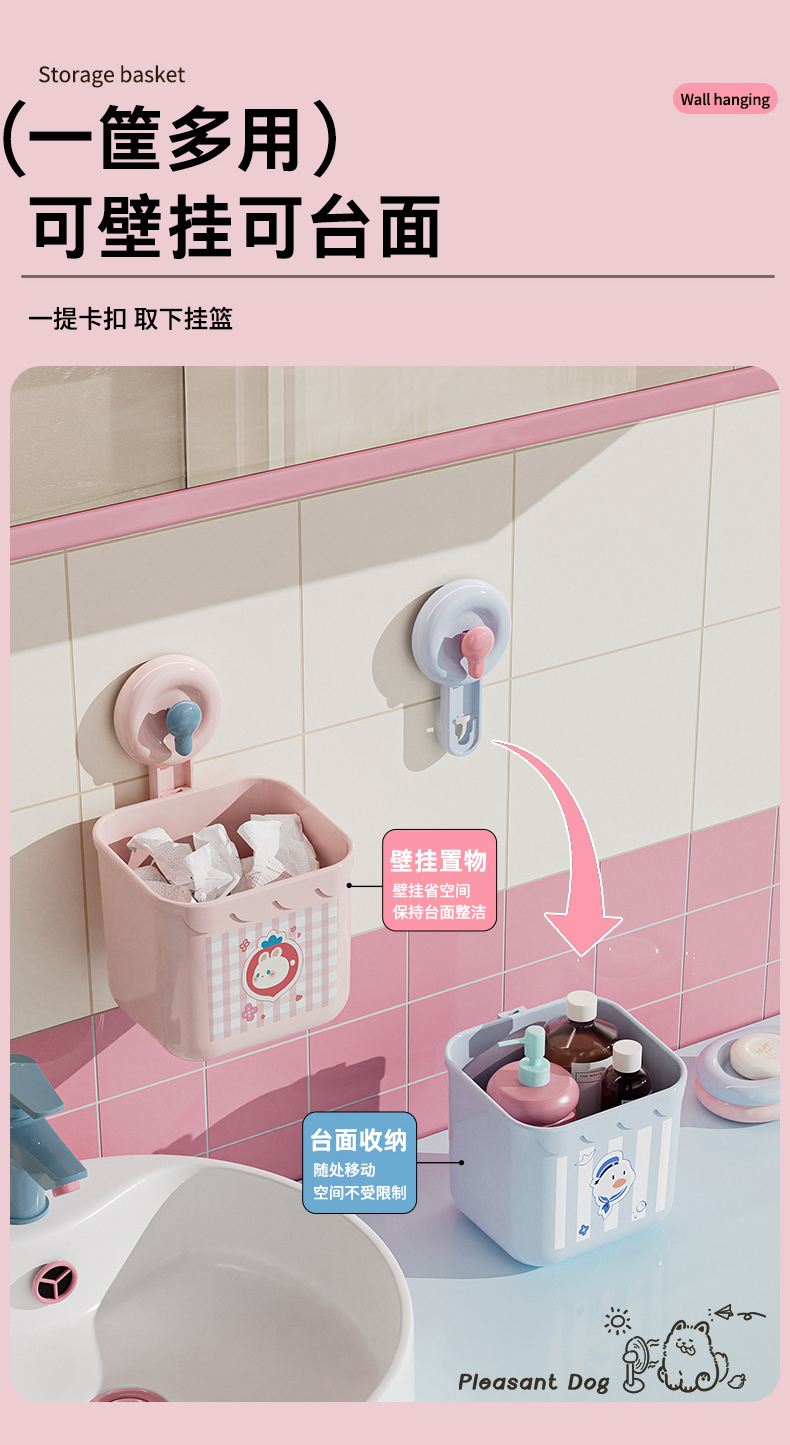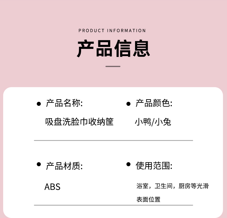 商品名称: 吸盘式洗脸巾镂空收纳筐 多用厨房卫浴收纳盒--粉色小兔