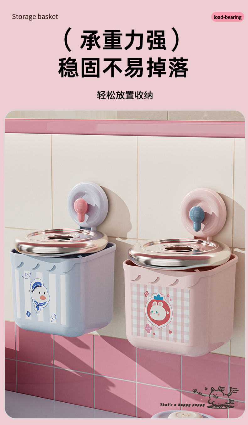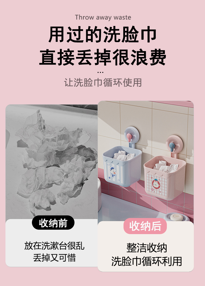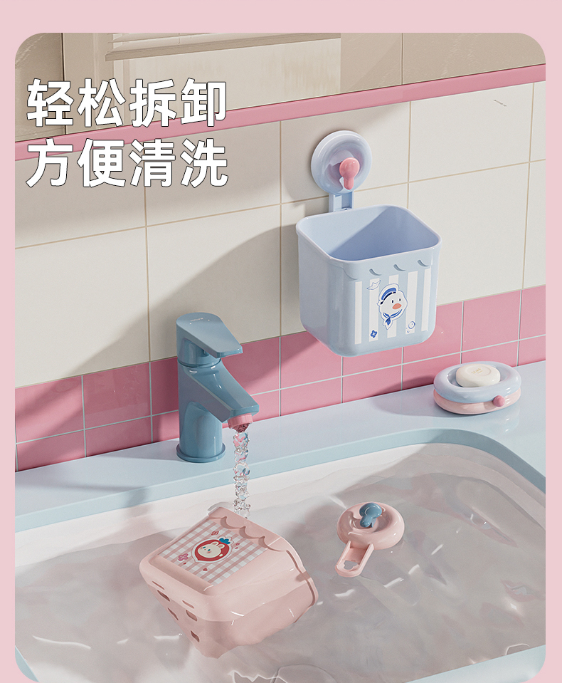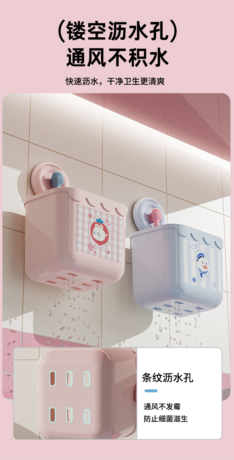 HQS-223670 吸盘式洗脸巾镂空收纳筐 多用厨房卫浴收纳盒--粉色小兔 91 登录查看