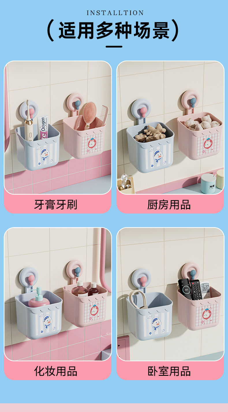 HQS-223671 吸盘式洗脸巾镂空收纳筐 多用厨房卫浴收纳盒--蓝色小鸭 163 5.45