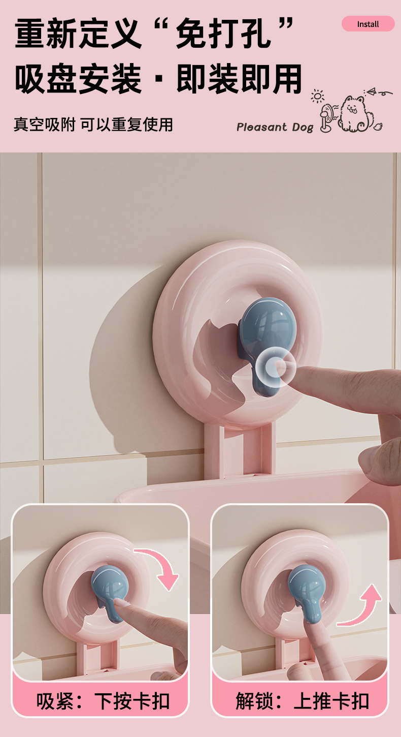 • 商品名称:吸盘式洗脸巾镂空收纳筐 多用厨房卫浴收纳盒--粉色小兔