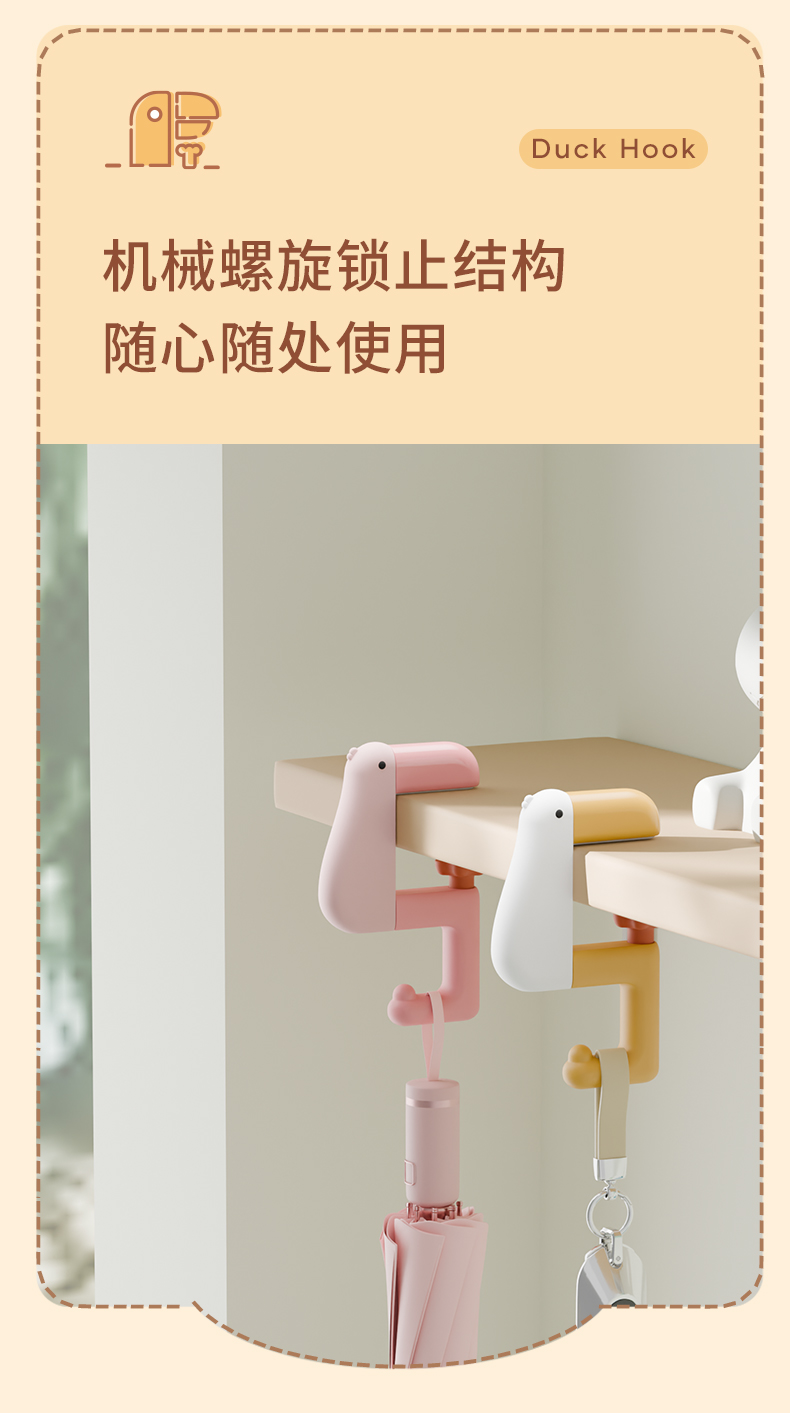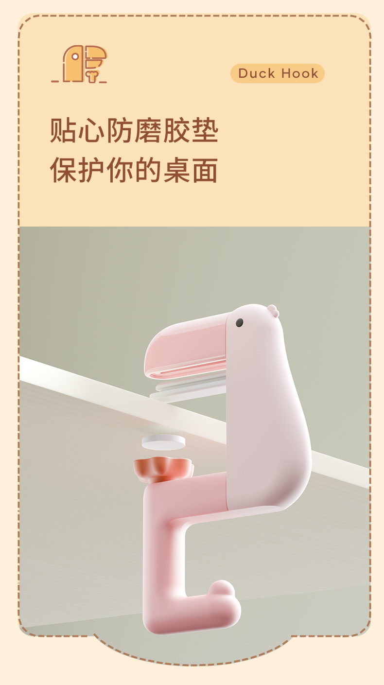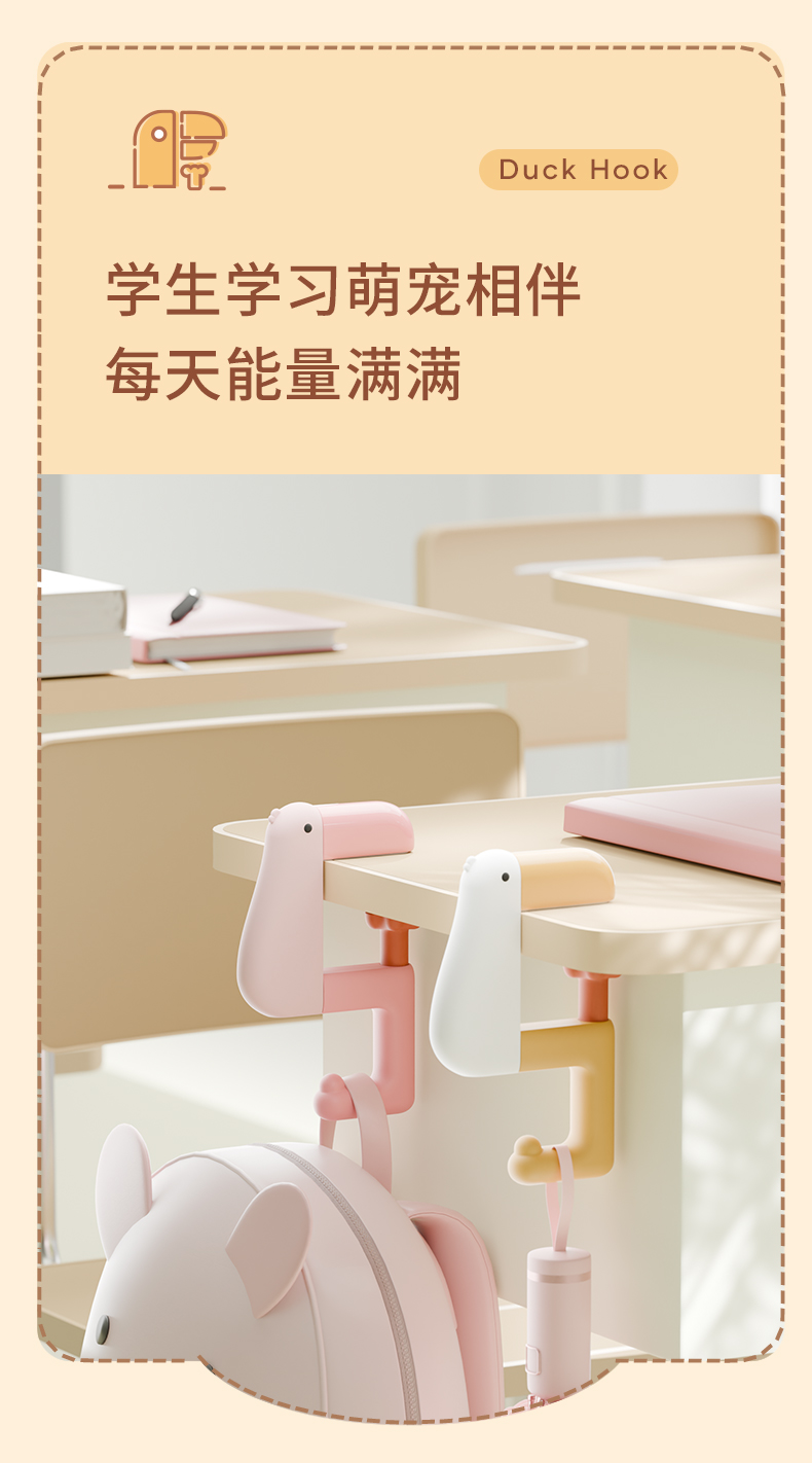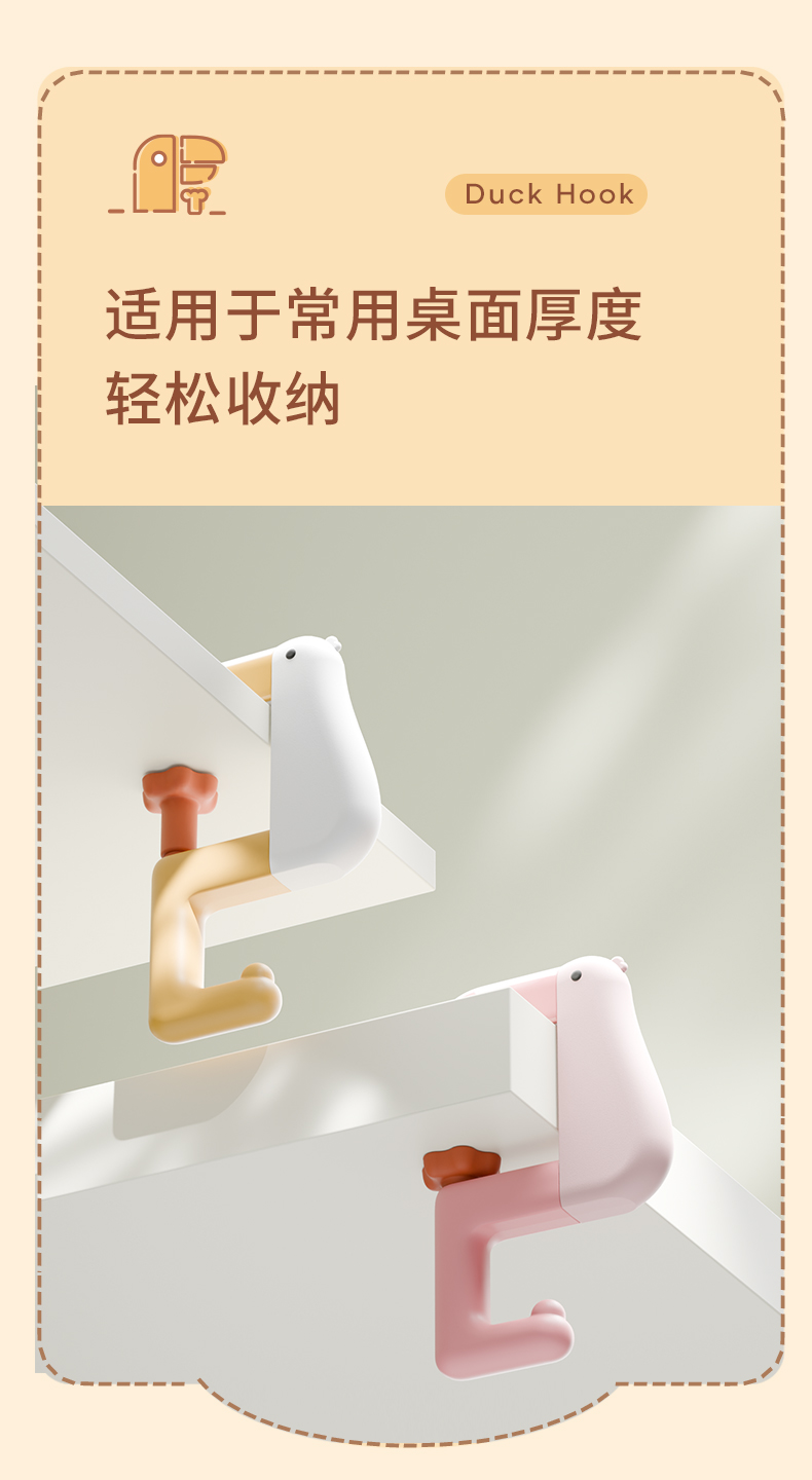 • 商品名称:卡通萌趣思考鸭多用书包挂钩 学生课桌书桌边包包挂钩--粉色