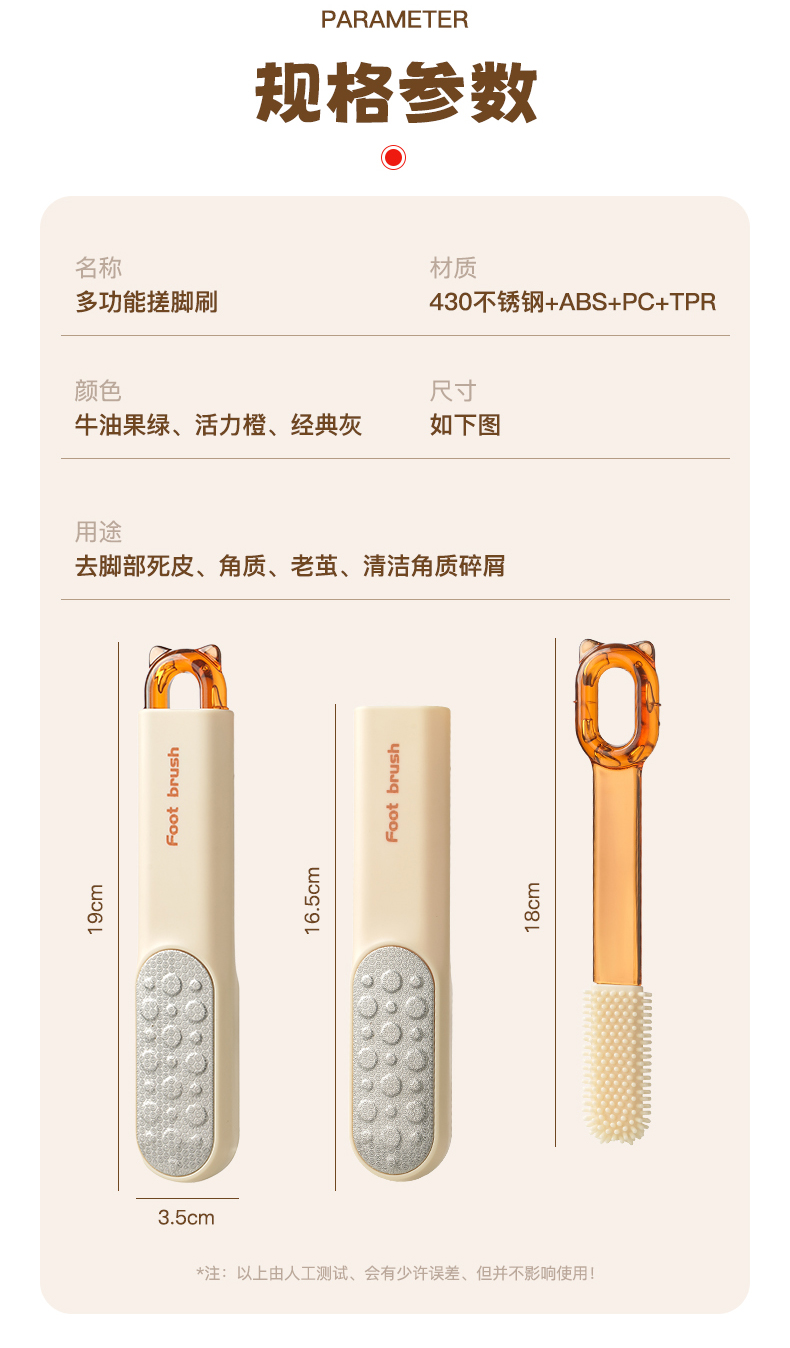 商品名称: 足部护理双面搓脚刷 含脚部清洁缝隙刷--白色