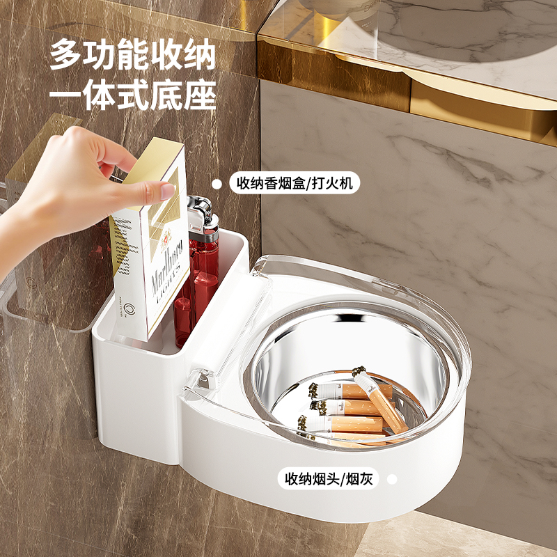 • 商品名称:卫生间洗手台壁挂烟灰缸 收纳盒带盖烟灰缸--白色+透明盖