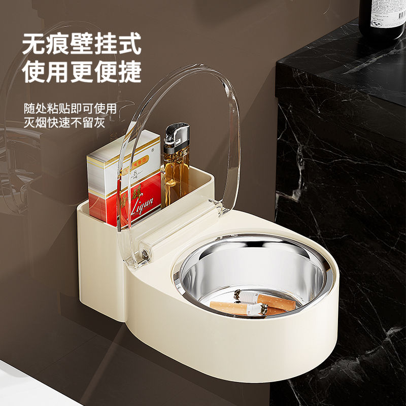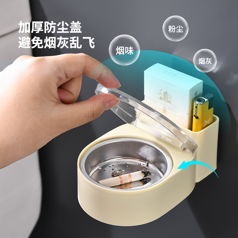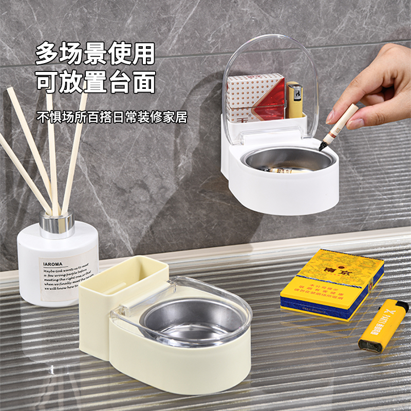 • 商品名称:卫生间洗手台壁挂烟灰缸 收纳盒带盖烟灰缸--奶白+透明盖
