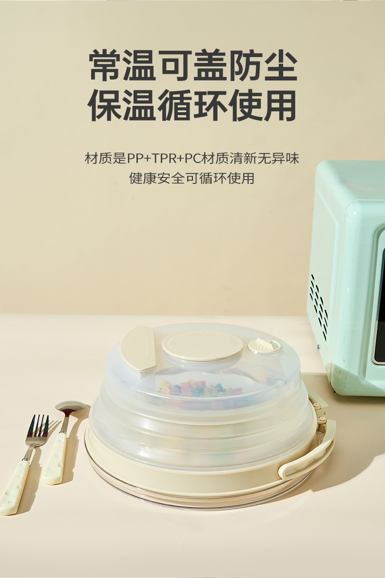 商品名称: 微波炉折叠专用盖加热防溅盖 防烫手柄保温保鲜带托盘 (调料款)