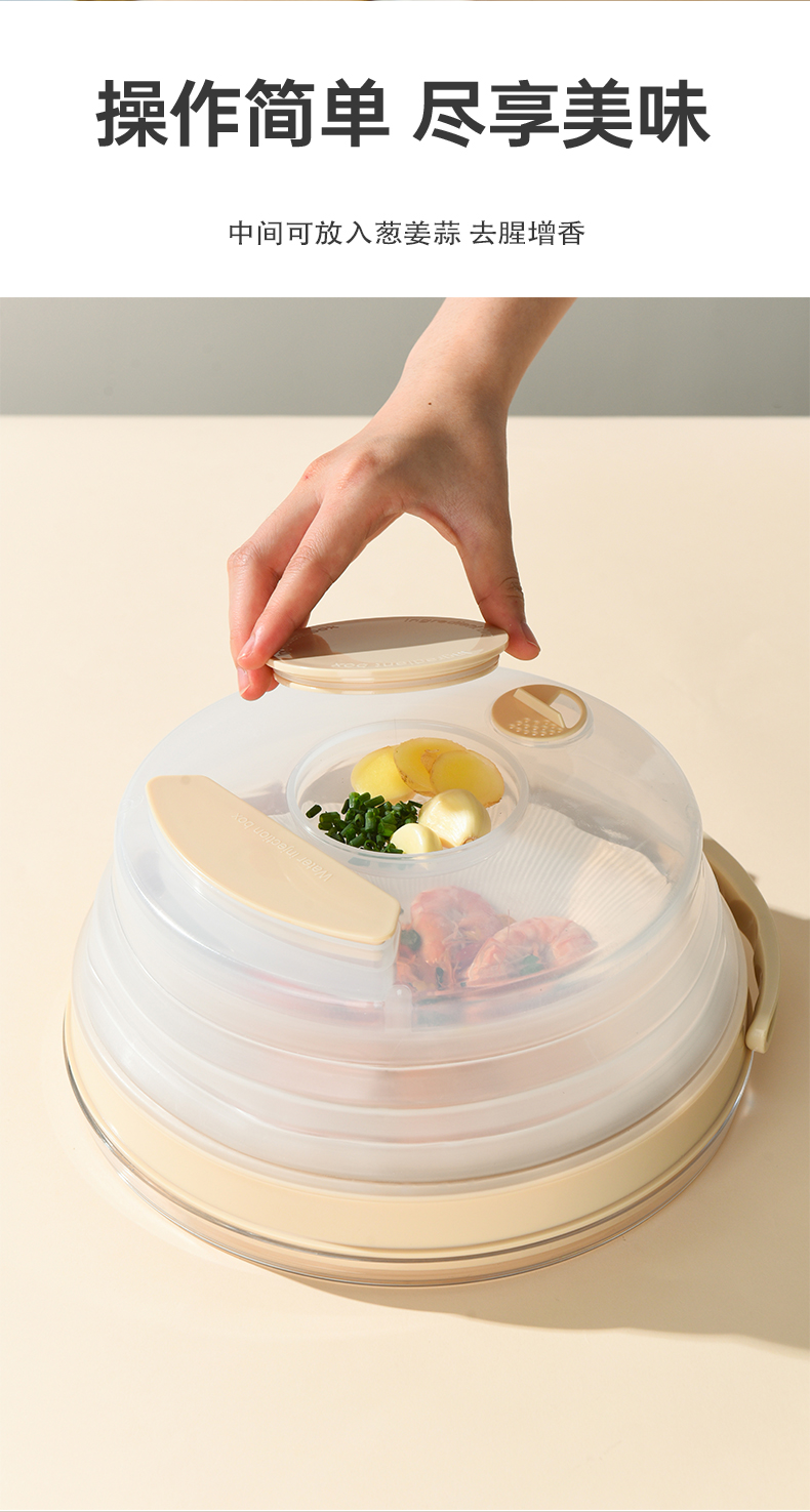 HQS-223713 微波炉折叠专用盖加热防溅盖 防烫手柄保温保鲜带托盘 (调料款) 57 登录查看