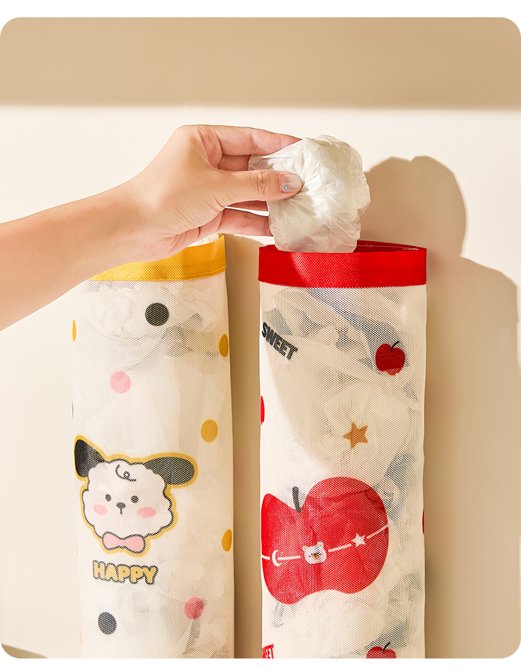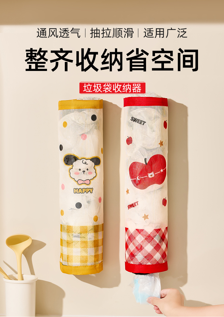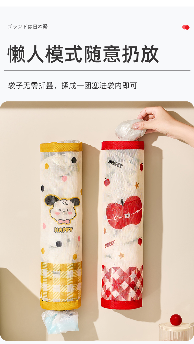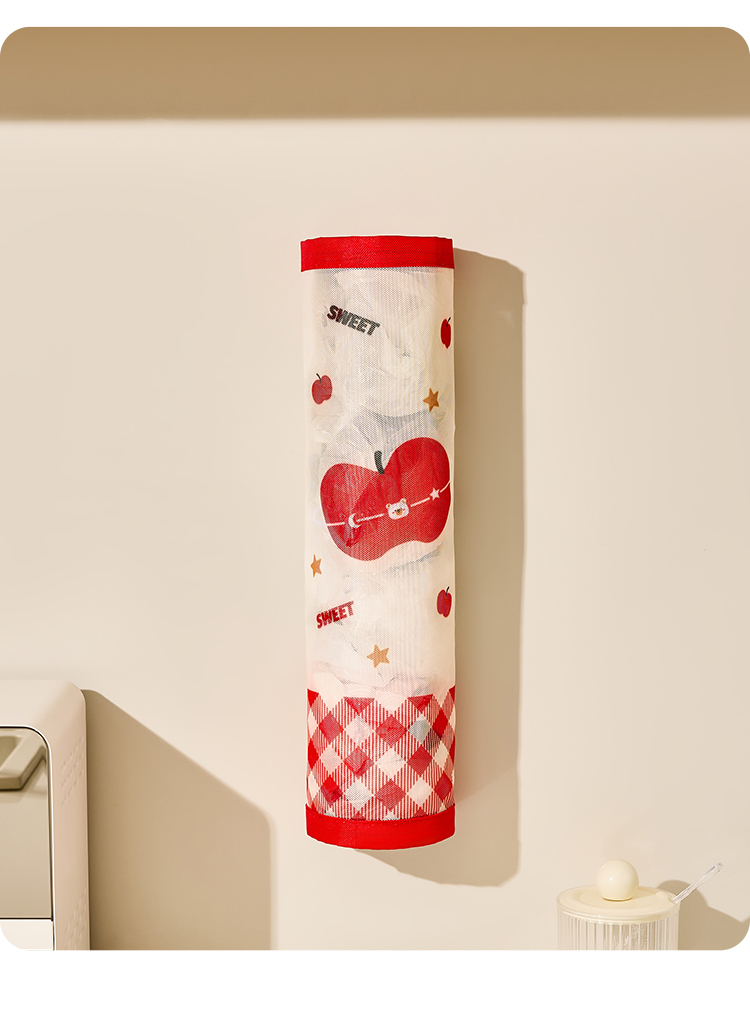 • 商品名称:魔术贴壁挂通风透气垃圾袋收纳挂袋--红格苹果熊