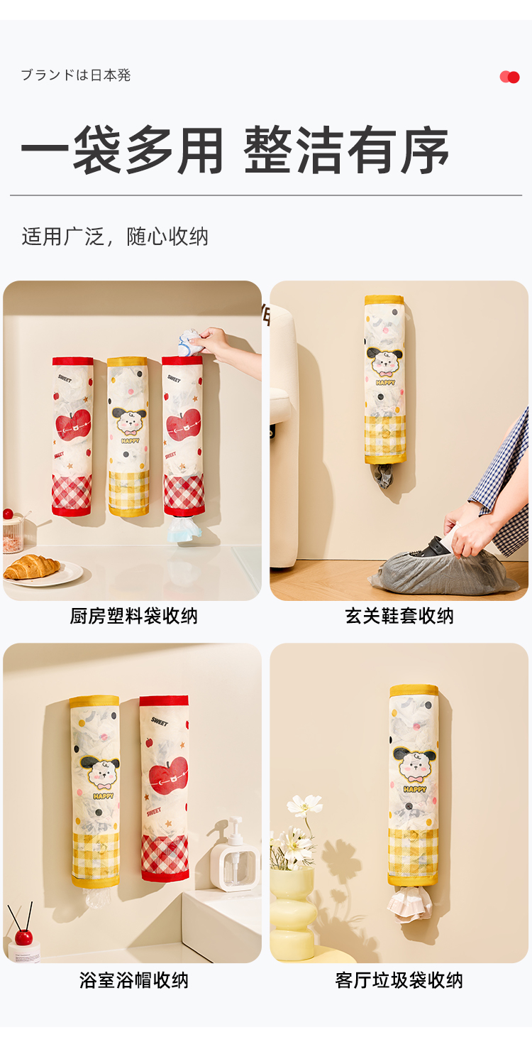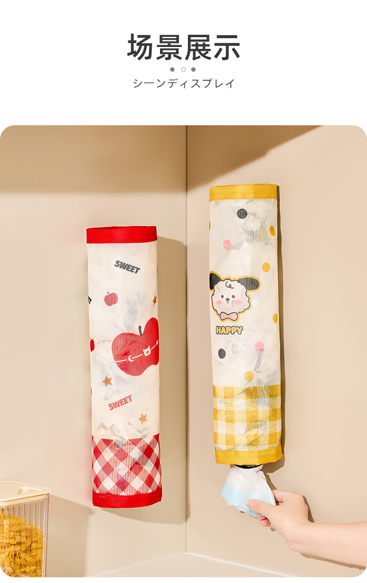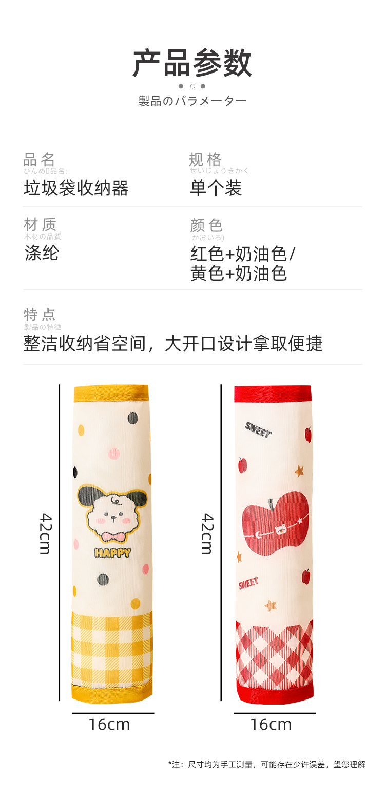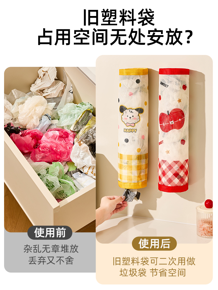 • 商品名称:魔术贴壁挂通风透气垃圾袋收纳挂袋--红格苹果熊