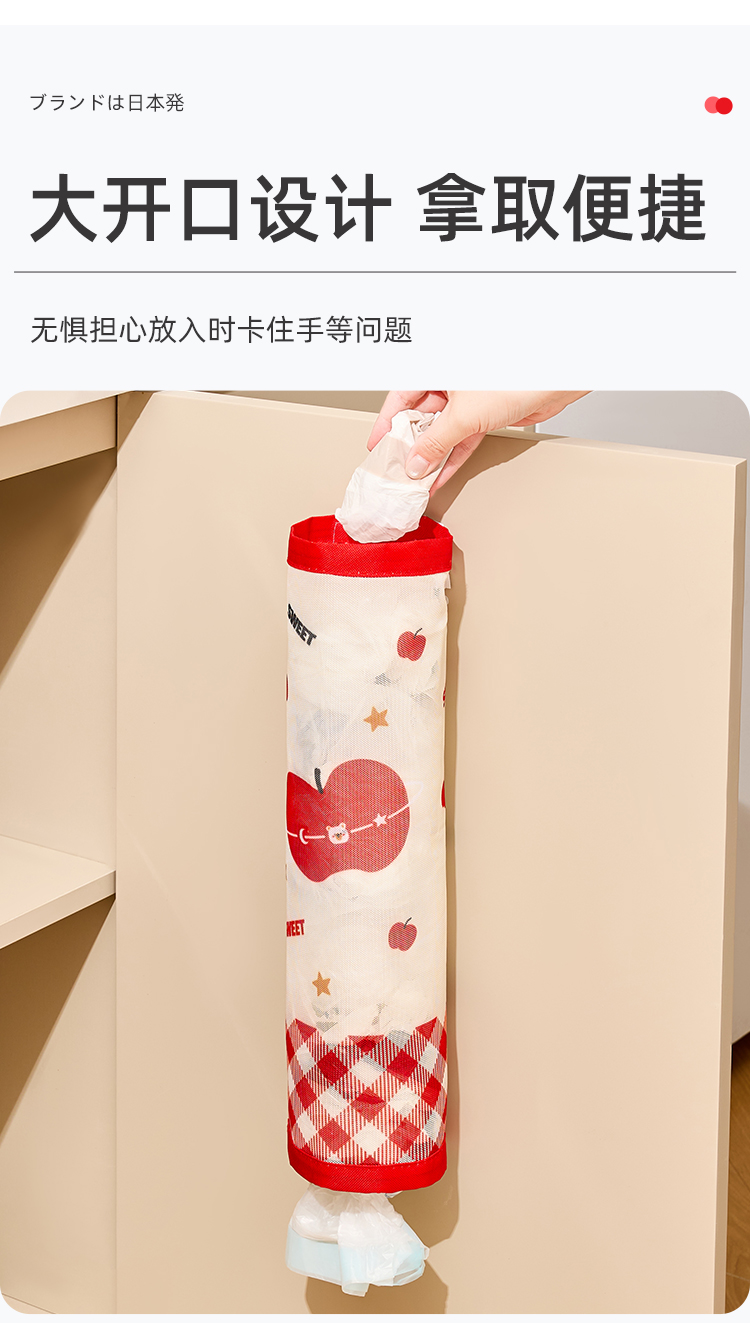商品名称: 魔术贴壁挂通风透气垃圾袋收纳挂袋--红格苹果熊