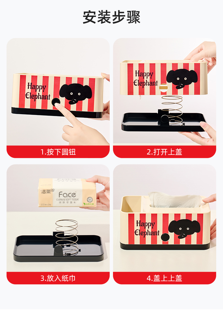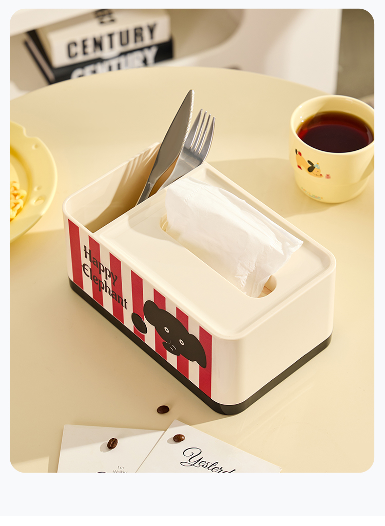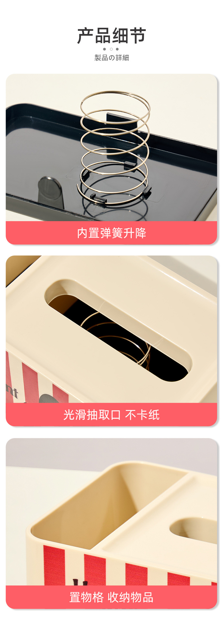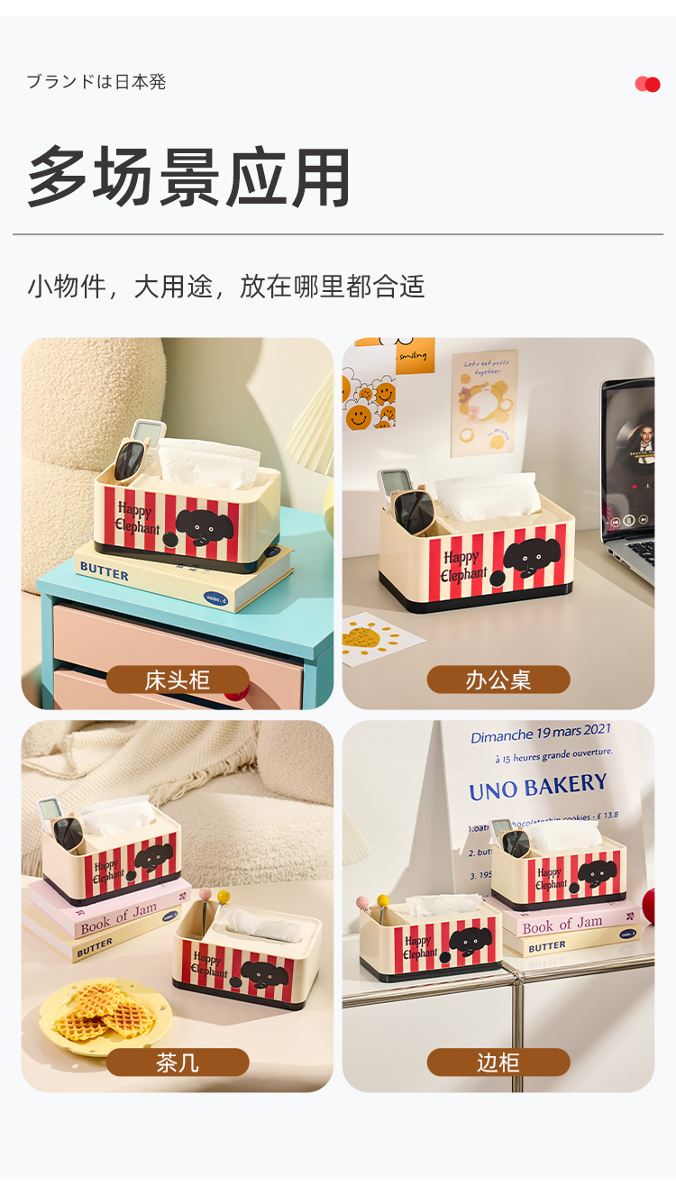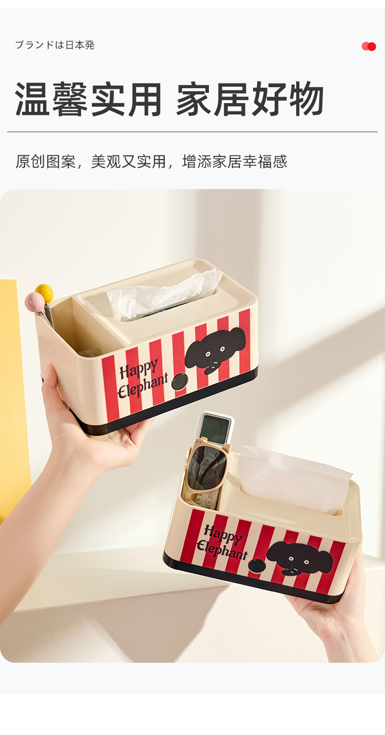 商品名称: 卡通大象弹簧升降纸巾盒 带侧置物格遥控器架--奶油色+黑色
