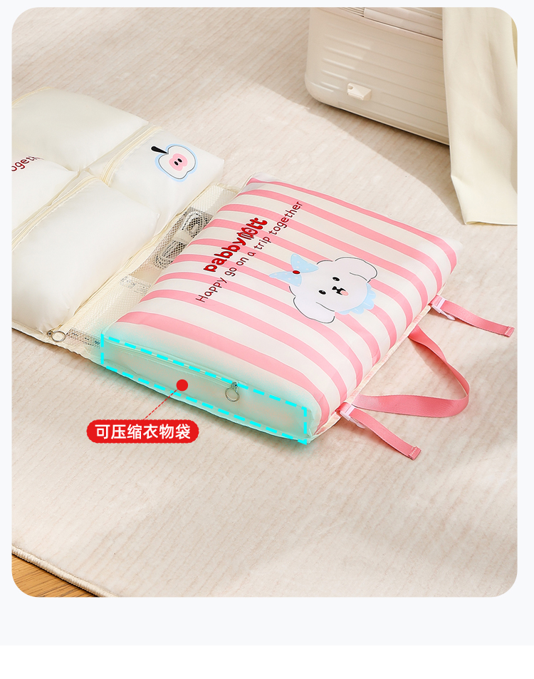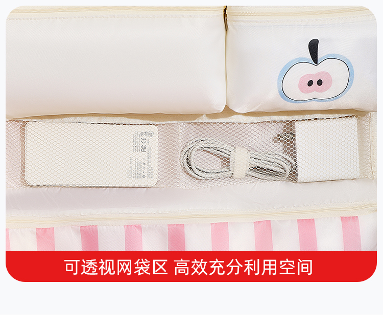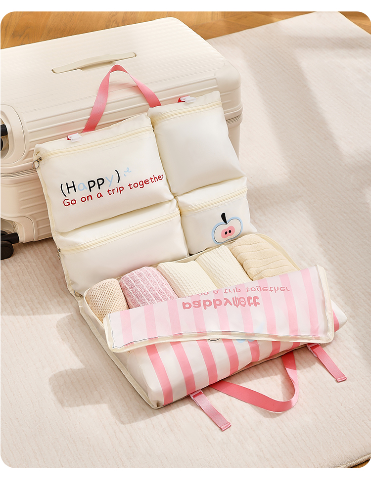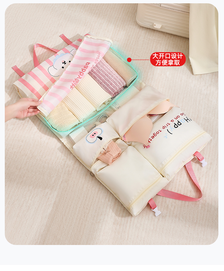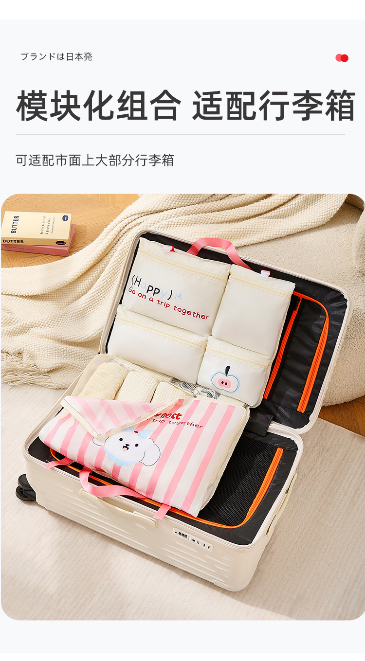 HQS-223732 七分区旅行箱内收纳包 带提手便携收纳袋--粉色竖纹 40 22.90