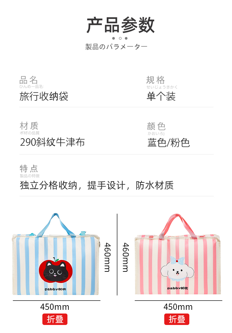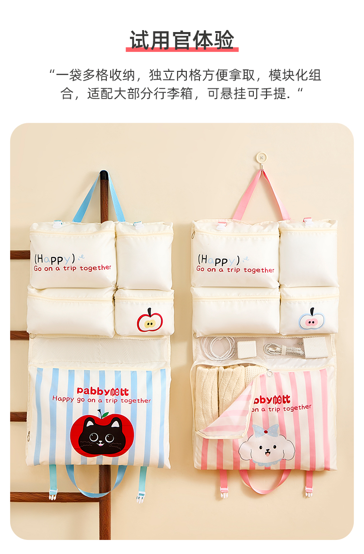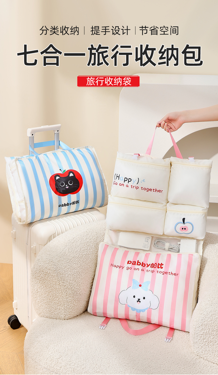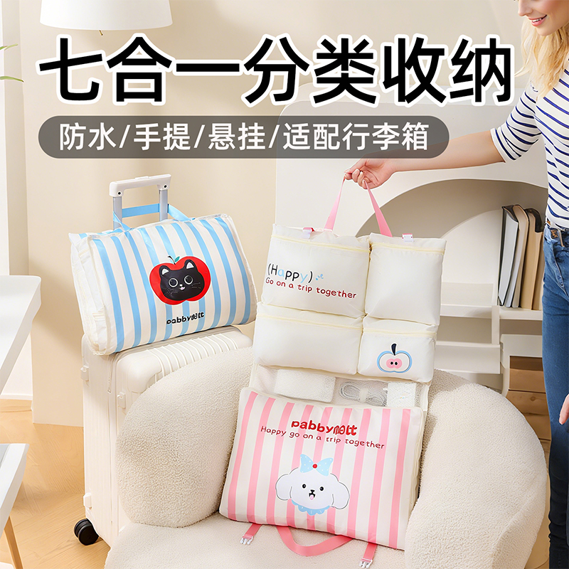 • 商品名称:七分区旅行箱内收纳包 带提手便携收纳袋--蓝色竖纹