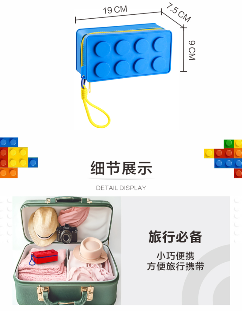 HQS-223740 积木形拉链收纳包 便携化妆品文具收纳包分类整理盒--蓝色 63 8.70