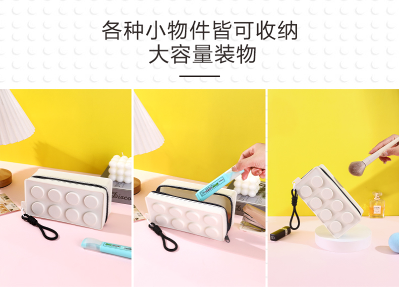 • 商品名称:积木形拉链收纳包 便携化妆品文具收纳包分类整理盒--白色