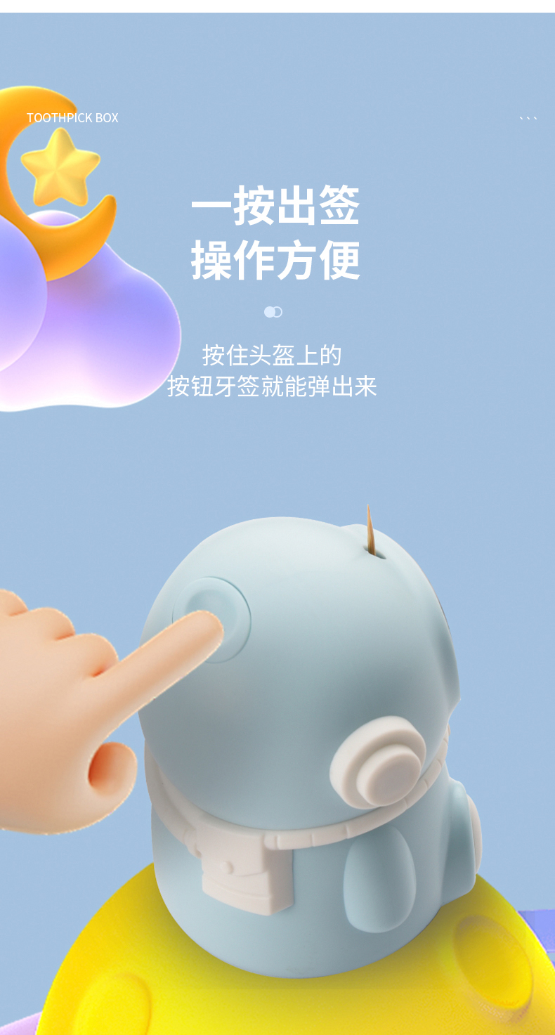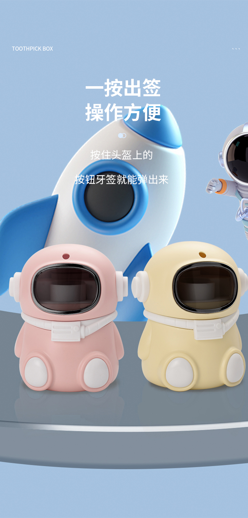商品名称: 太空宇航员自动牙签盒 按压式牙签盒--浅黄色