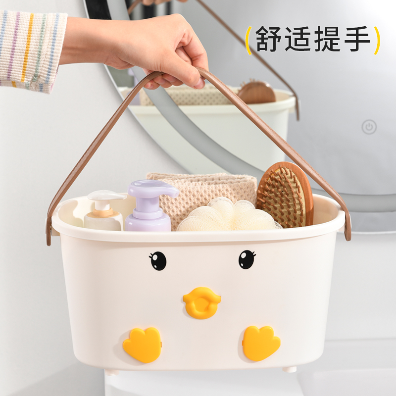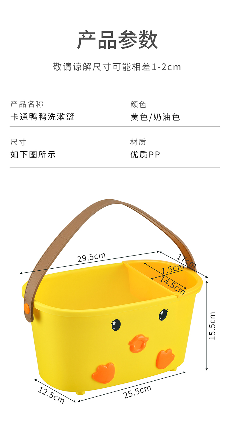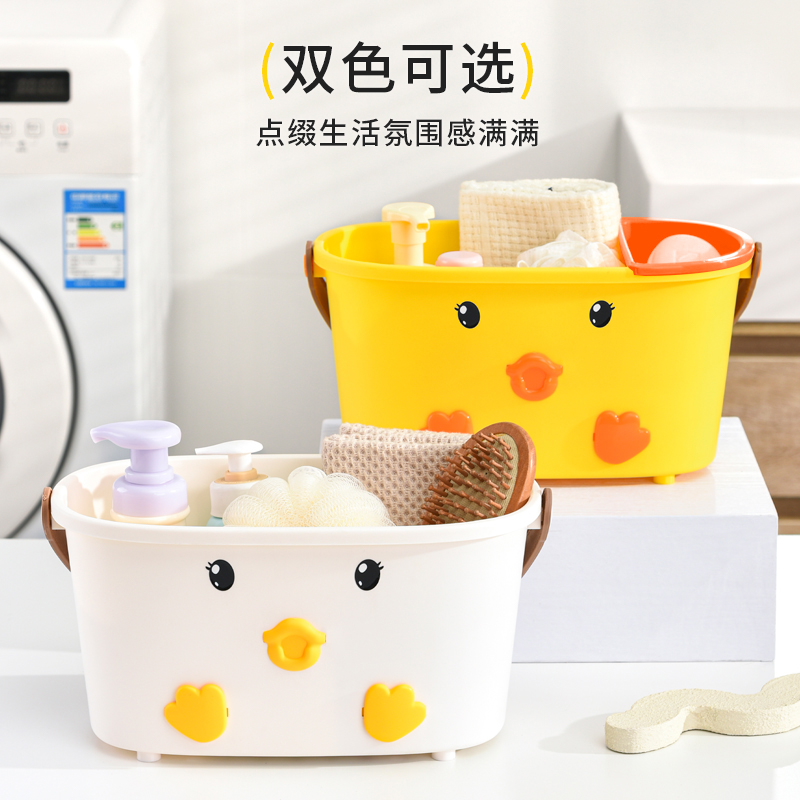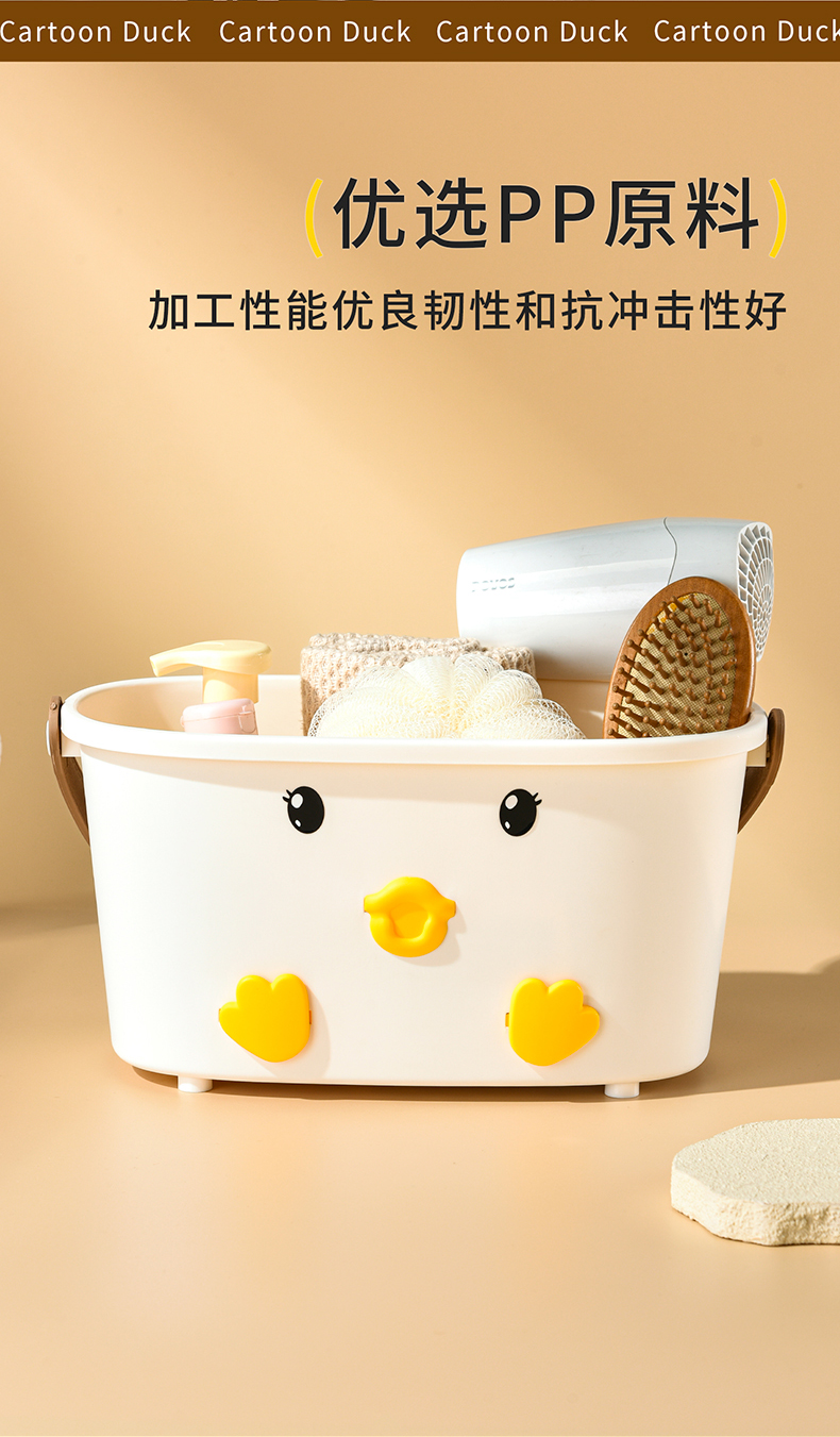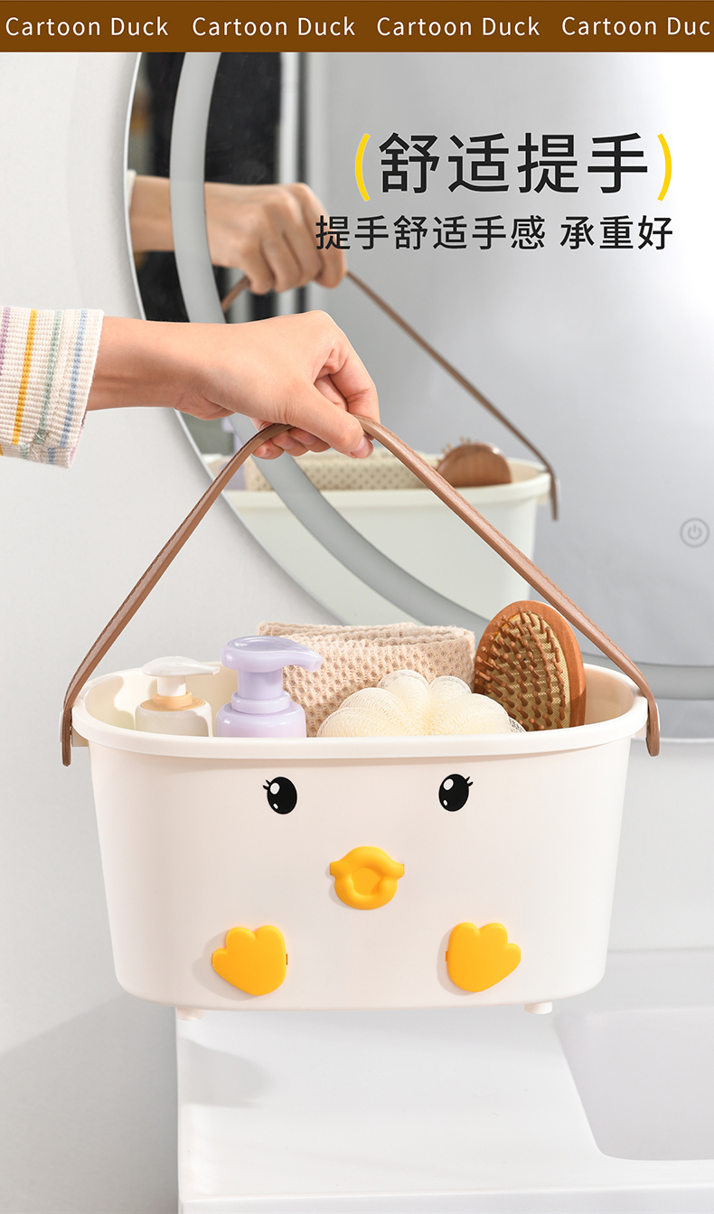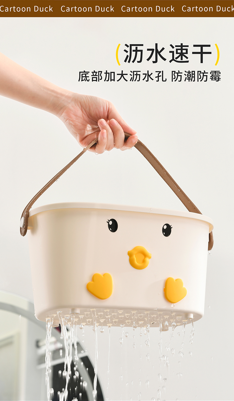• 商品名称:可爱小鸭手提洗漱篮 底部沥水孔卫浴收纳盒--白色(无小挂篮)