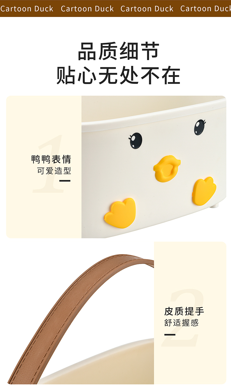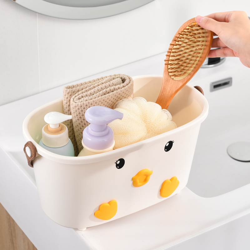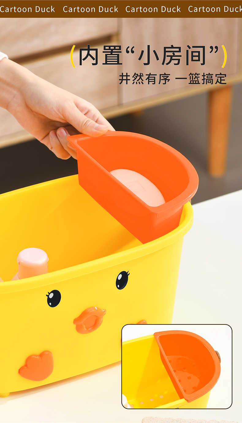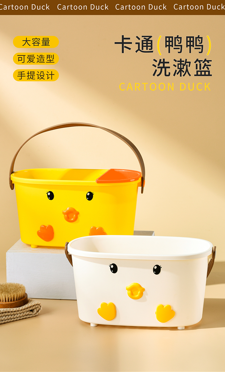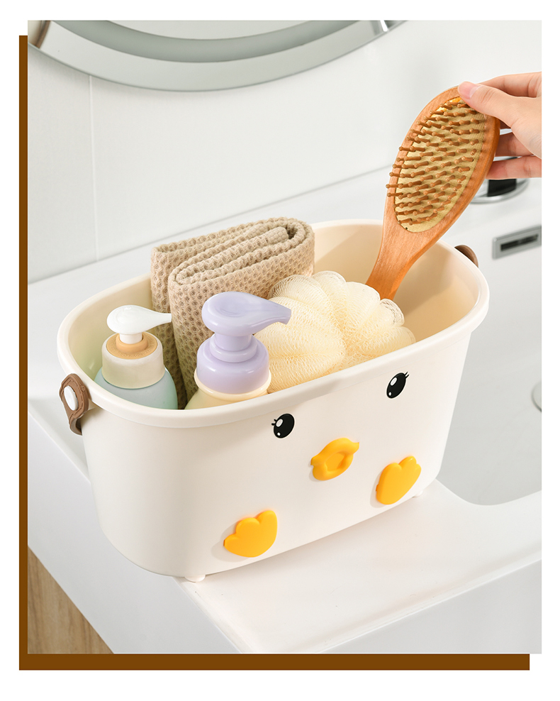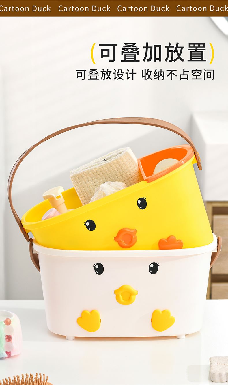 • 商品名称:可爱小鸭手提洗漱篮 底部沥水孔卫浴收纳盒--白色(无小挂篮)