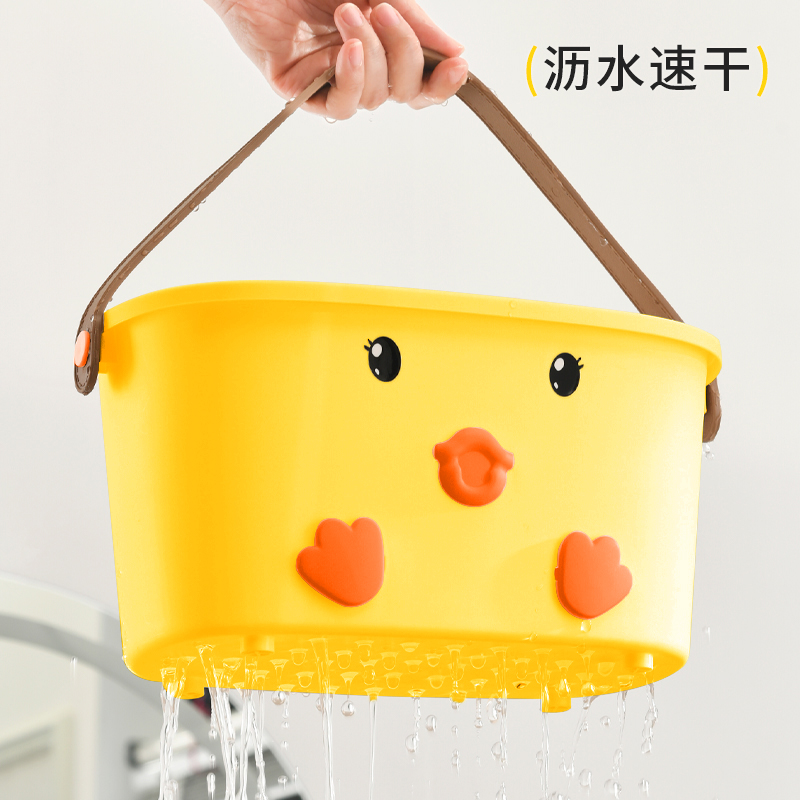 • 商品名称:可爱小鸭手提洗漱篮 底部沥水孔卫浴收纳盒--黄色(无小挂篮)