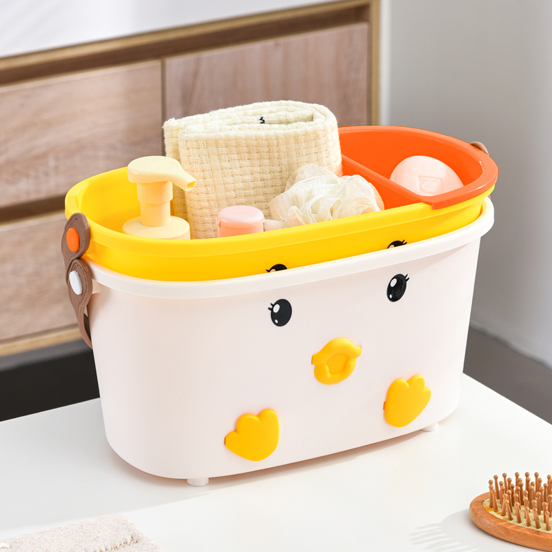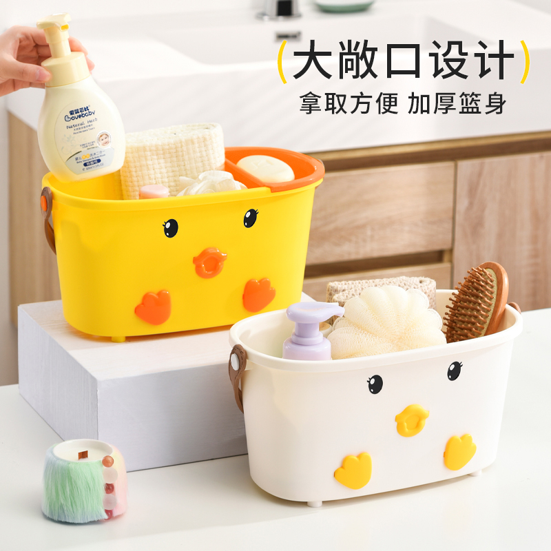 • 商品名称:可爱小鸭手提洗漱篮 底部沥水孔卫浴收纳盒--黄色(带沥水分类小挂篮)