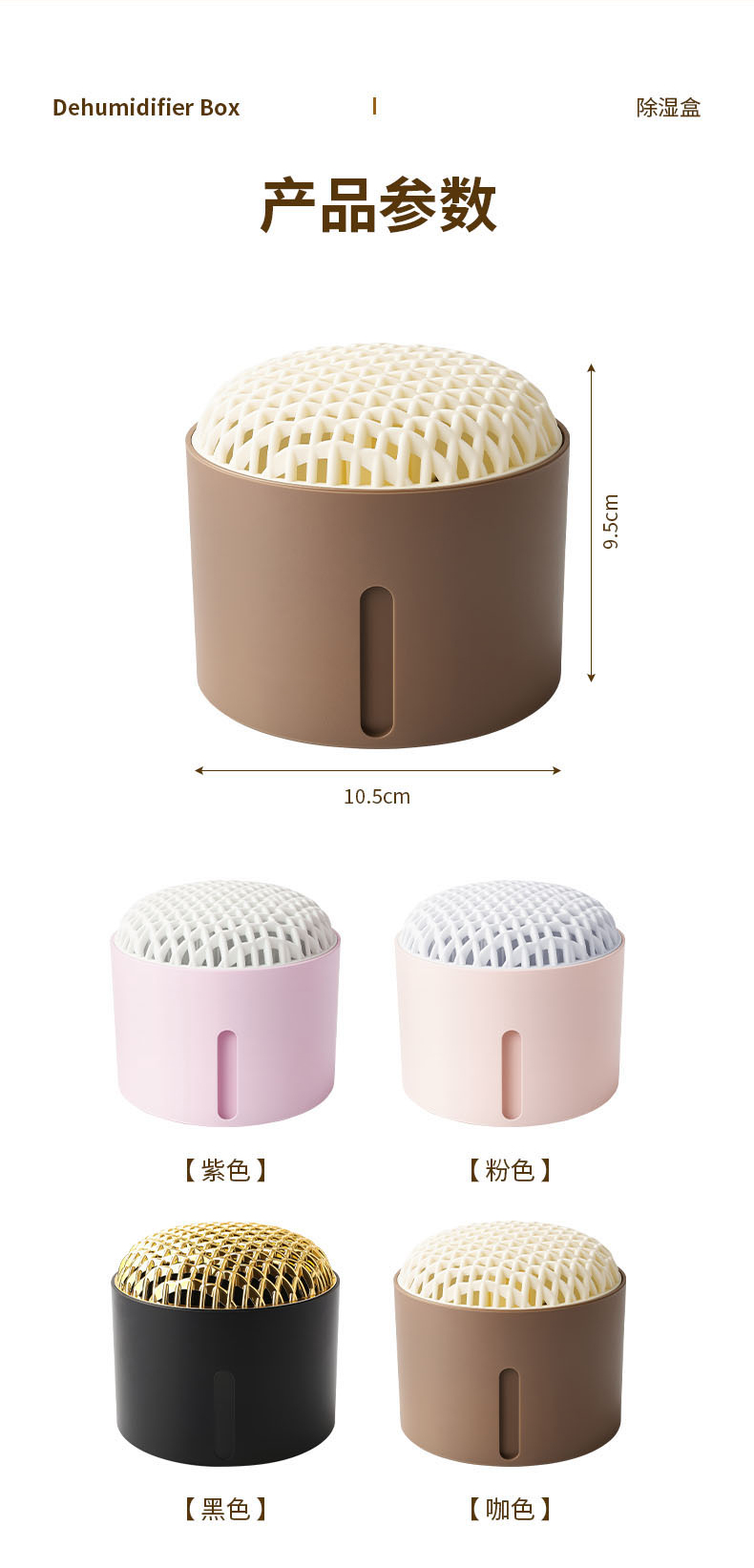 • 商品名称:圆顶家庭防霉防潮除湿盒可视集水盒 送除湿剂无味香薰片--黑色金顶