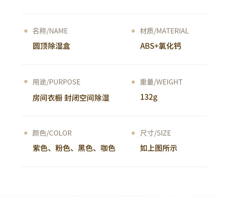 商品名称: 圆顶家庭防霉防潮除湿盒可视集水盒 送除湿剂无味香薰片--黑色金顶