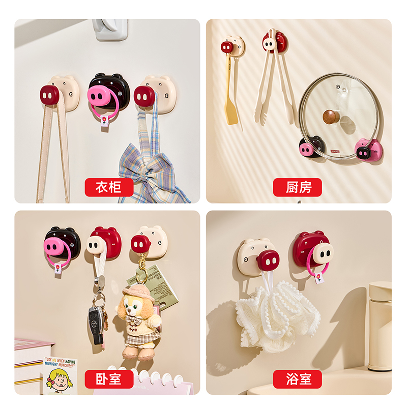 HQS-223779 可爱小猪强力真空吸盘挂钩 玄关客厅厨卫多用挂钩 2个装--奶油色+红色 66 登录查看