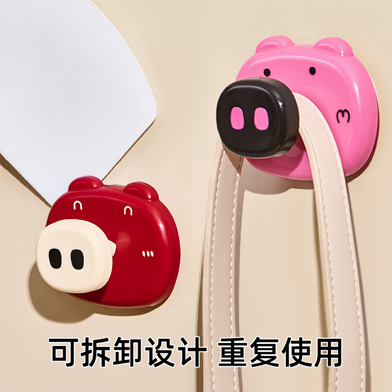 商品名称: 可爱小猪强力真空吸盘挂钩 玄关客厅厨卫多用挂钩 2个装--奶油色+红色