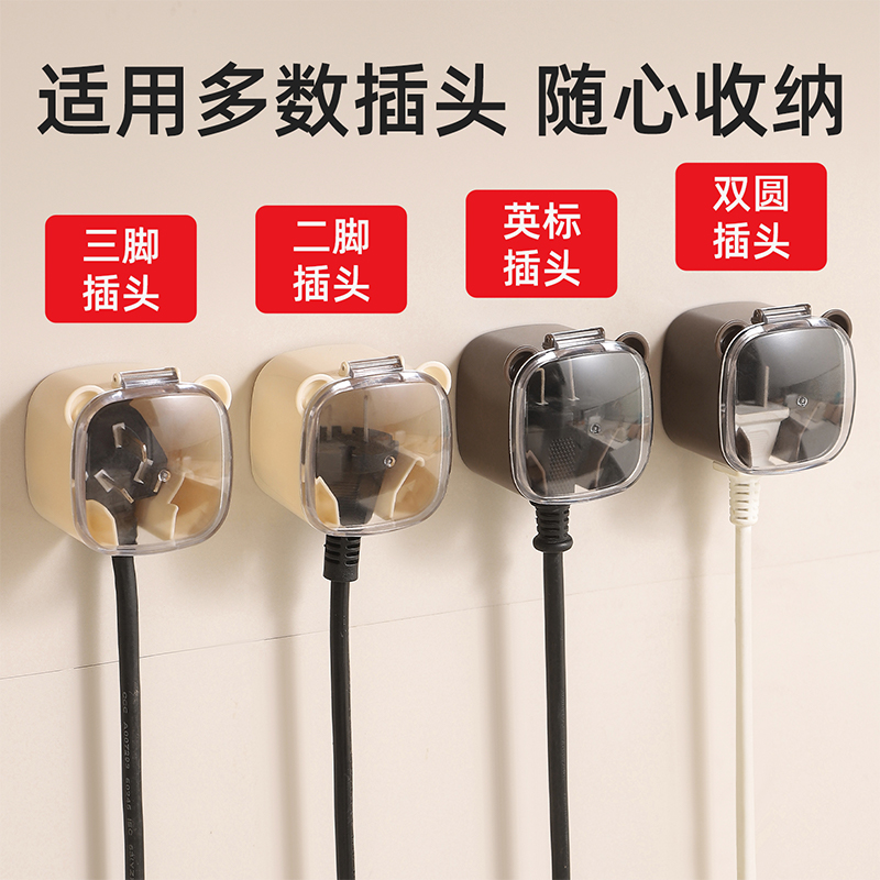 商品名称: 无痕壁挂带透明盖防潮厨房浴室插头挂钩 2个装--棕色