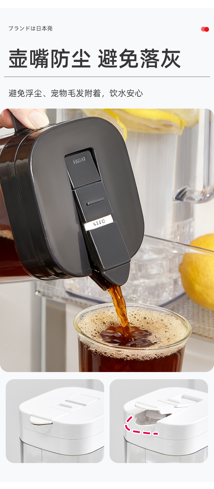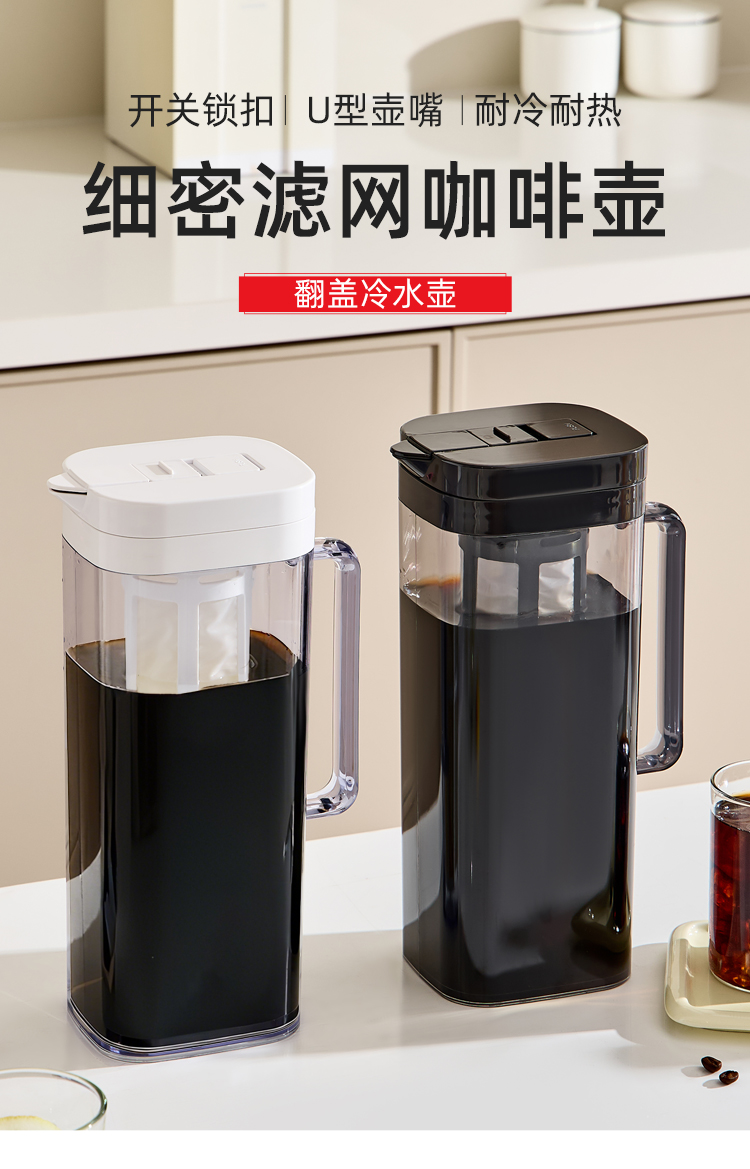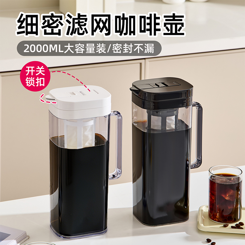 • 商品名称:双重密封锁扣开关翻盖冷水壶 细密滤网咖啡壶 2L--黑色
