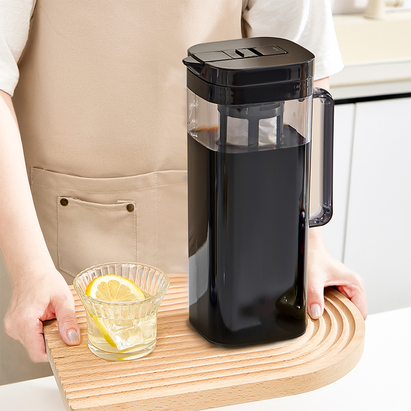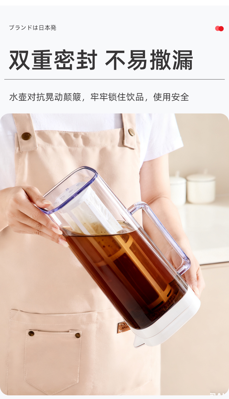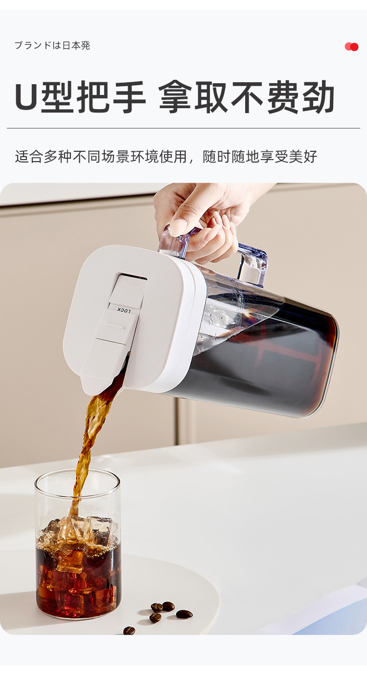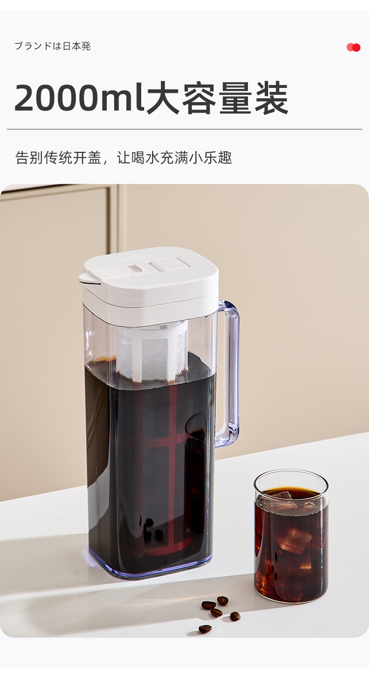 • 商品名称:双重密封锁扣开关翻盖冷水壶 细密滤网咖啡壶 2L--黑色