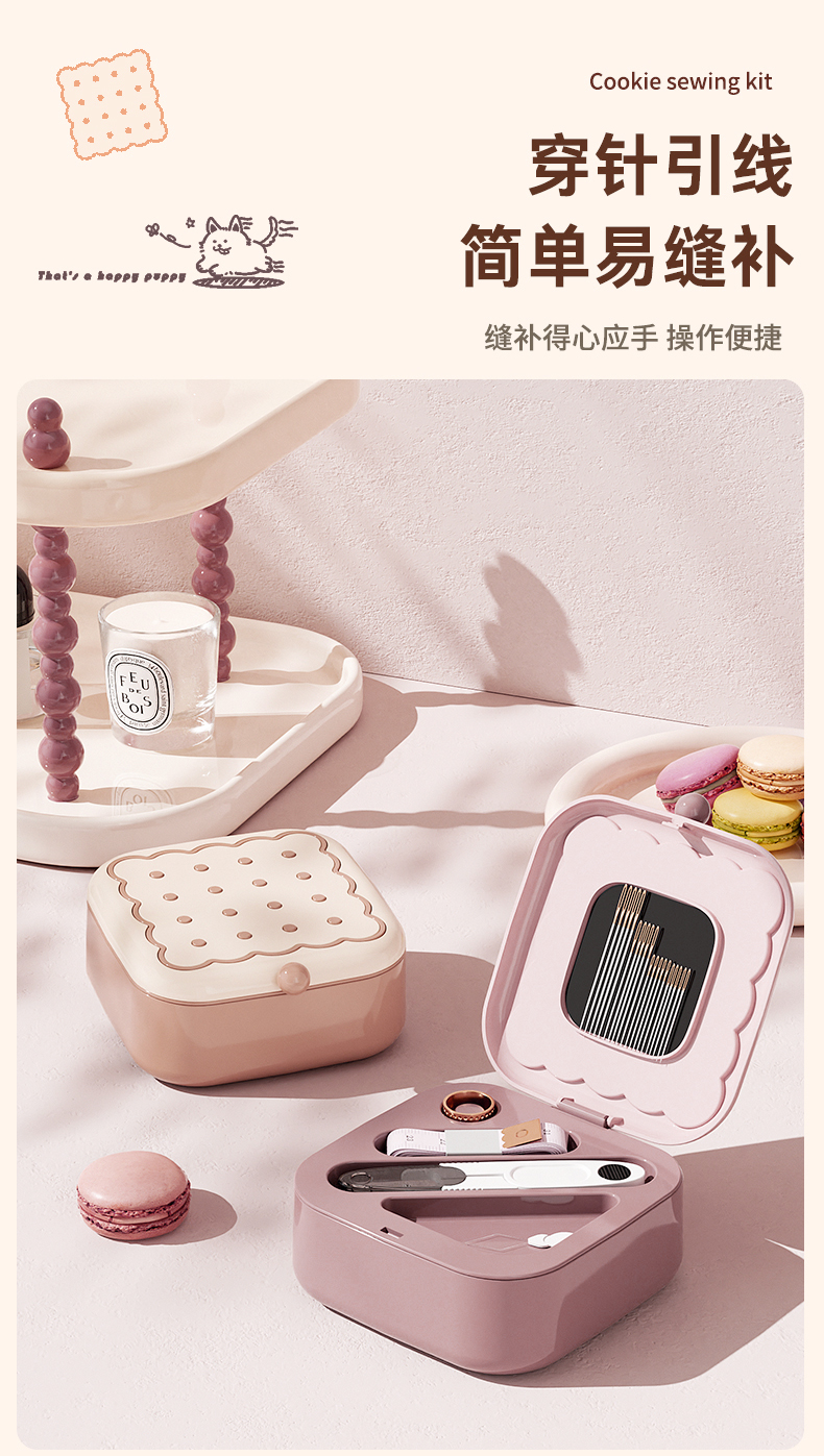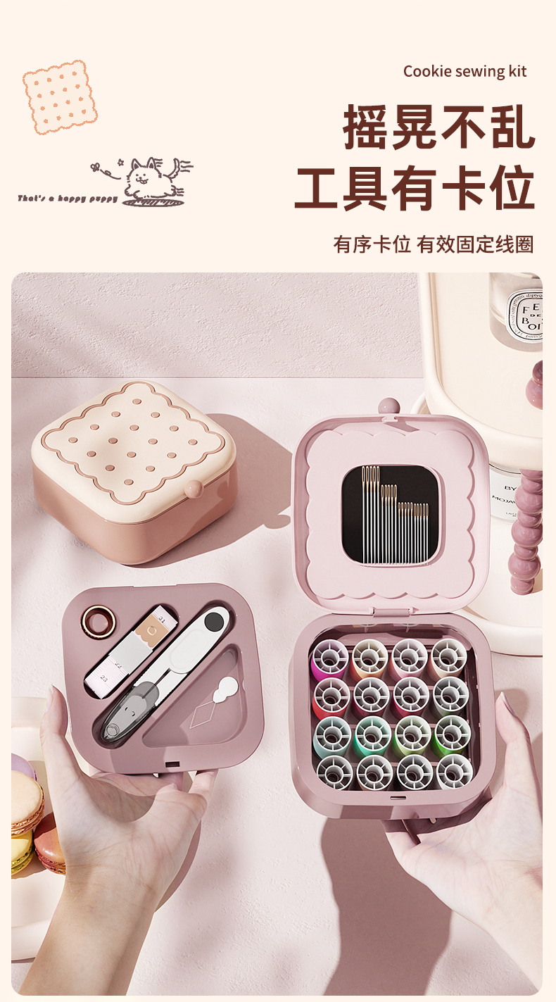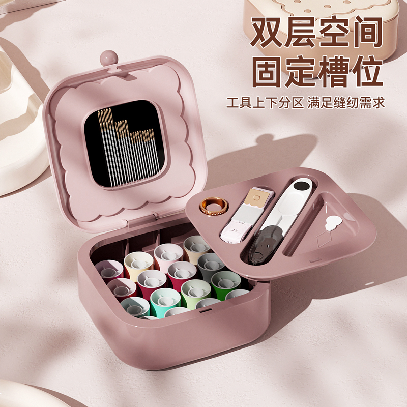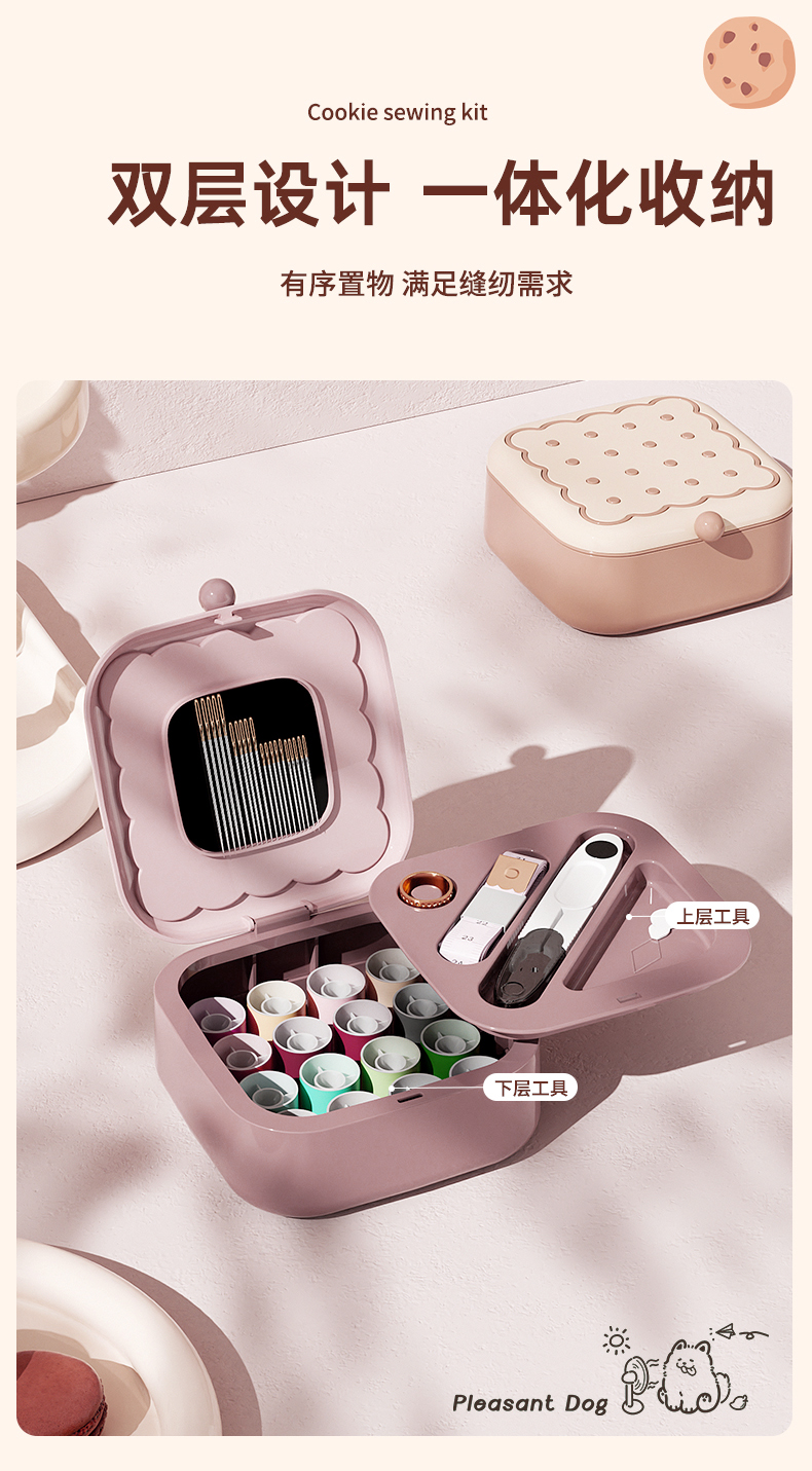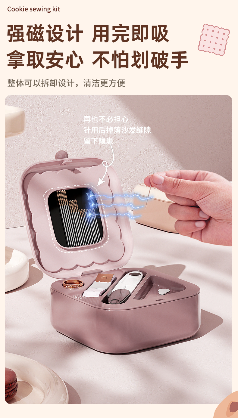 • 商品名称:曲奇形针线盒 强磁吸附双层针线套装--粉色
