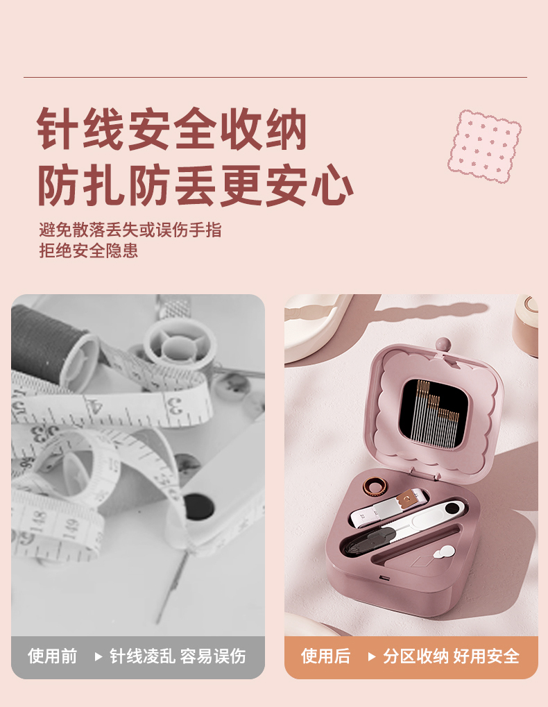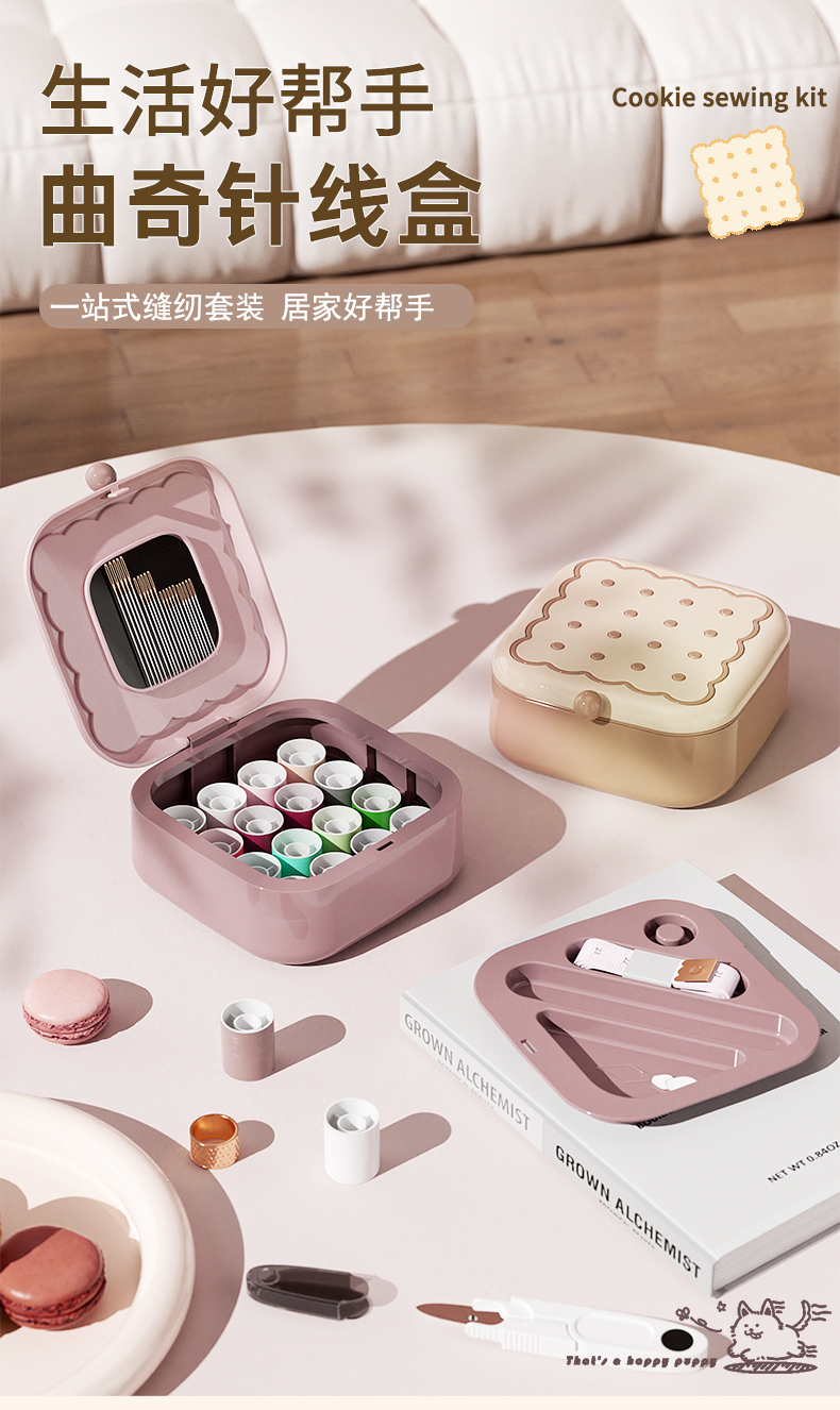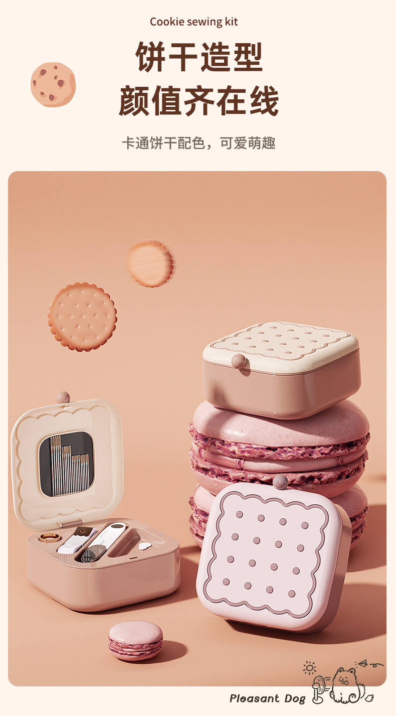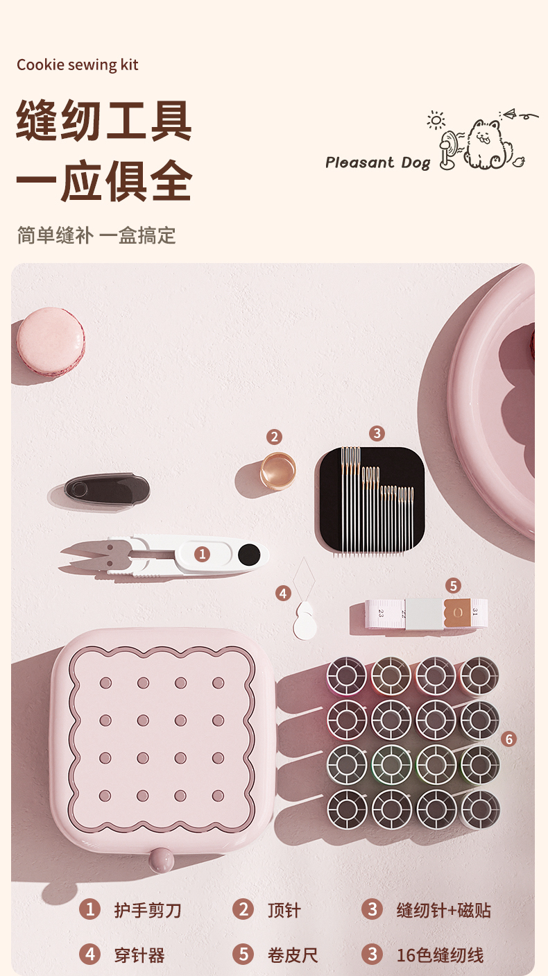 • 商品名称:曲奇形针线盒 强磁吸附双层针线套装--粉色